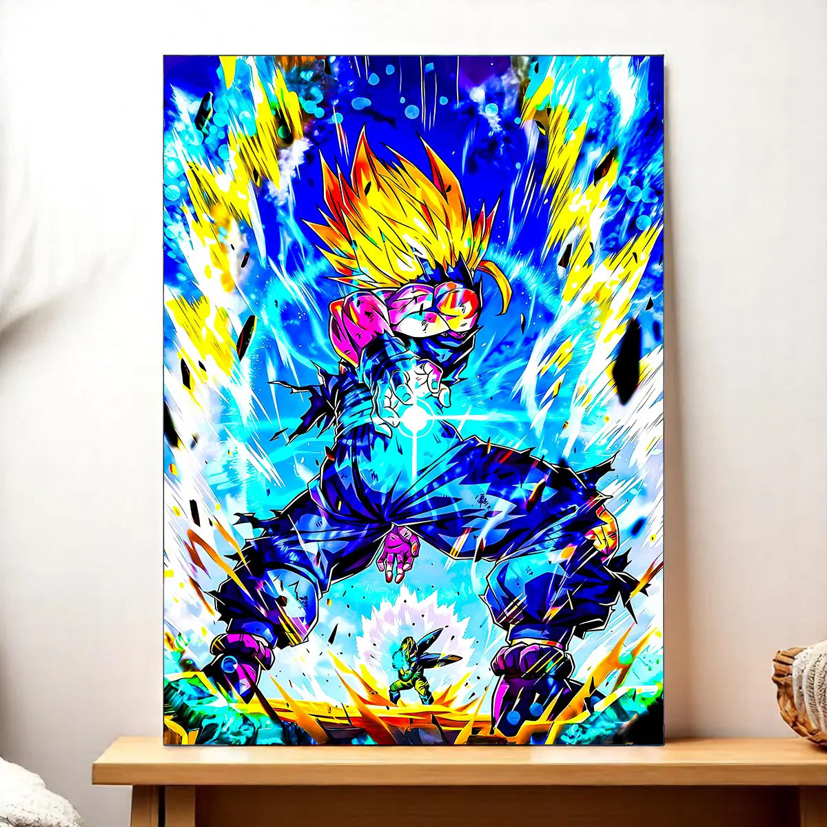 Le poster porte une tonalité plus cinématographique, format grand spectacle. Idéal pour donner de l’impact à une pièce, restituer l’intensité du combat contre Cell et offrir un visuel qui attire le regard. Lumière, contraste, mouvement — tout est pensé pour que l’illustration respire.