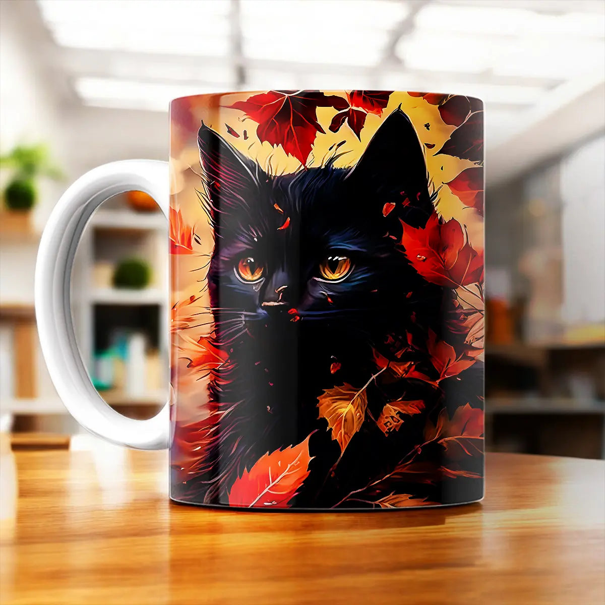 Mug Chat Automne — Douceur féline et feuilles dorées