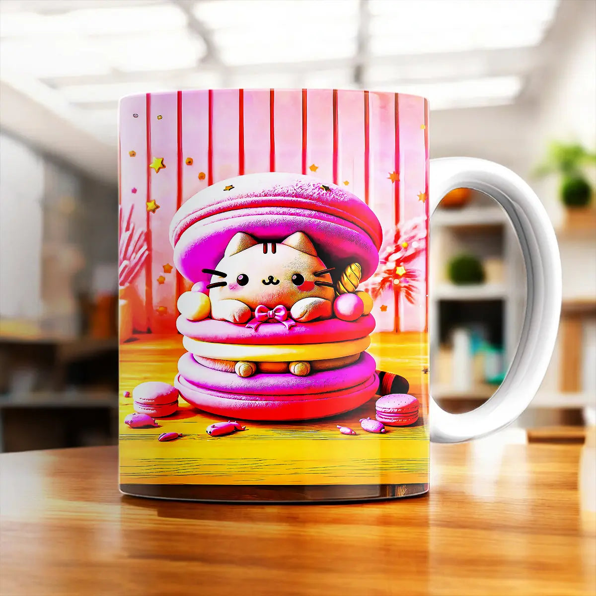 Mug Chat Macaron – Douceur kawaii pour vos pauses sucrées
