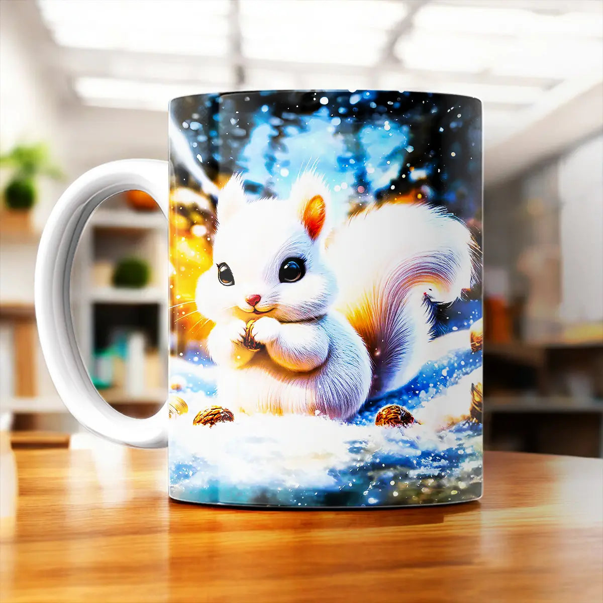 Mug Écureuil Blanc – La magie hivernale à chaque gorgée