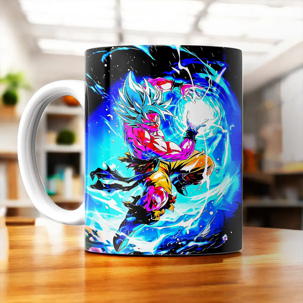Parce que chaque détail raconte quelque chose: l’aura bleutée, la posture instinctive, le trait artisanal. Ce mug ne se contente pas d’être beau, il donne envie de se lever, d’agir, de suivre son intuition — un vrai petit boost matinal. Que vous le gardiez pour vous ou que vous l’offriez, c’est une création artistique qui s’intègre aussi bien dans une collection DBZ que sur une étagère déco. Et entre nous, voir ce visuel sur sa tasse, c’est un sourire assuré à chaque pause.