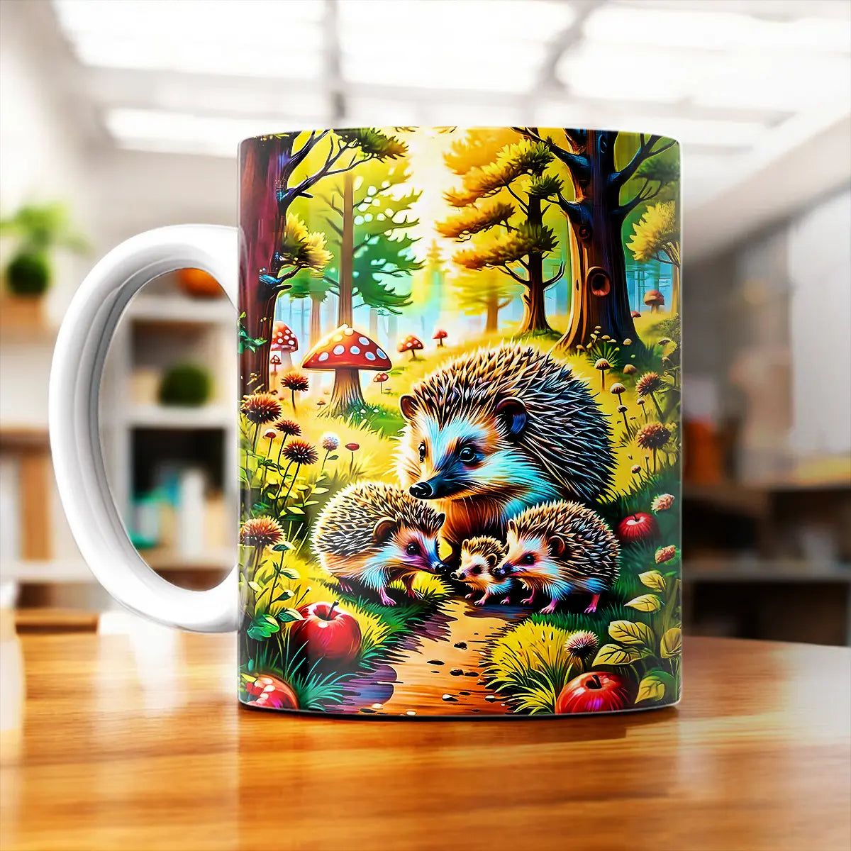 Chaque mug est une petite œuvre, pensée pour apporter chaleur et sourire à vos pauses. Le design famille hérisson évoque la douceur du foyer et crée une ambiance cosy instantanée. On est d’accord, un bel objet déco qui sert aussi de tasse pratique, ça change tout. Idéal à offrir ou à garder précieusement, ce mug rend chaque gorgée un peu plus tendre.