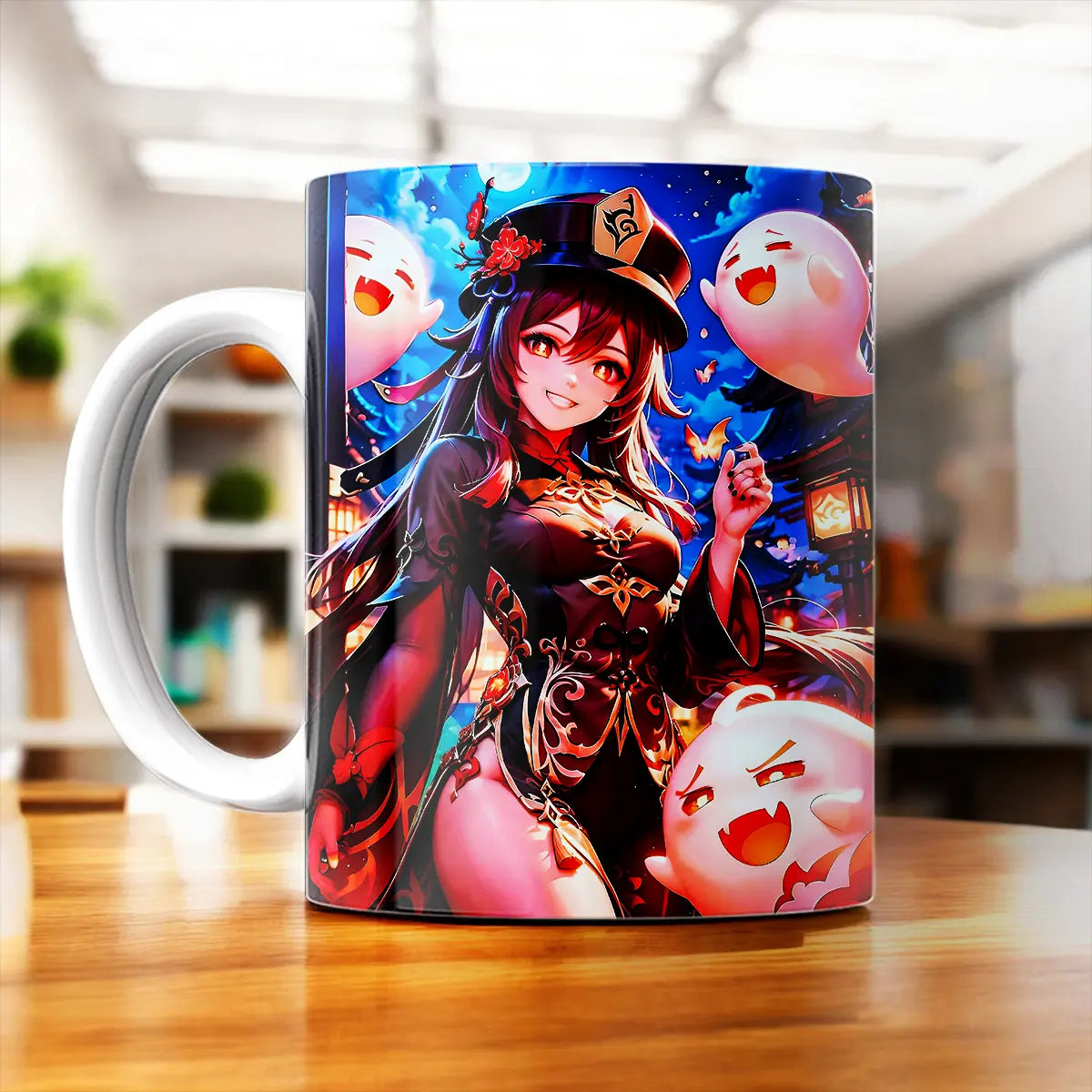 Parce que chaque mug est une véritable création artistique, pas une image générée par IA. Il est pensé pour les moments détente, les pauses café partagées ou les sessions gaming réconfortantes. Ce mug Hu Tao se glisse dans votre quotidien et devient vite celui qu'on ne prête pas, l'allié des matins un peu brumeux et des après-midis créatifs. Et puis, avouez, ces petits fantômes farceurs donnent tout de suite une ambiance plus légère.