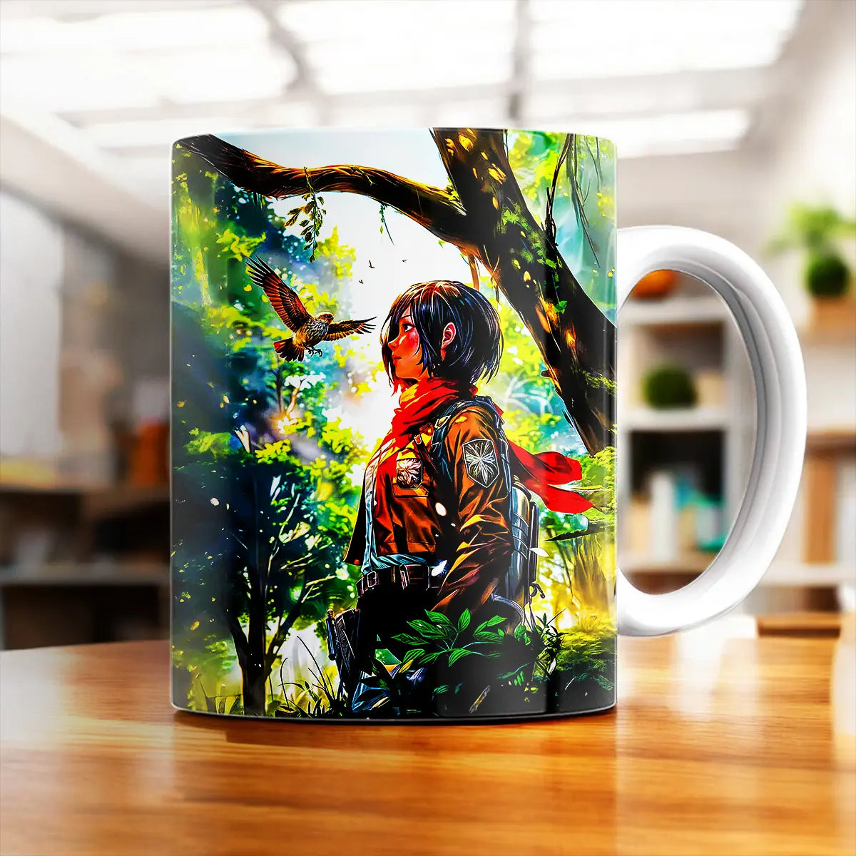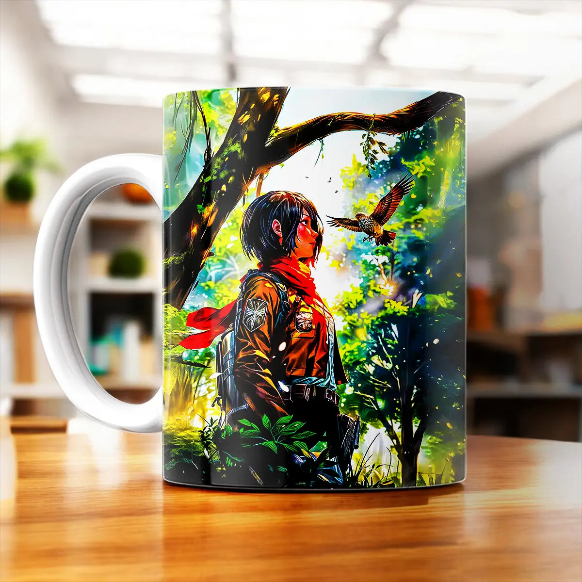 Offrez une idée cadeau qui a du sens pour un fan SNK ou pour quelqu'un qui aime les objets avec une histoire. Ce mug illustré en céramique blanche est sublimé par la chaleur sur les deux faces et porte une illustration dessinée à la main sur tablette graphique. Contenance de 325 ml, parfait pour un café corsé ou un thé réconfortant. Cadeau fan, cadeau utile, cadeau qui marque les esprits, bref le trio gagnant pour les amateurs de Mikasa Ackerman.