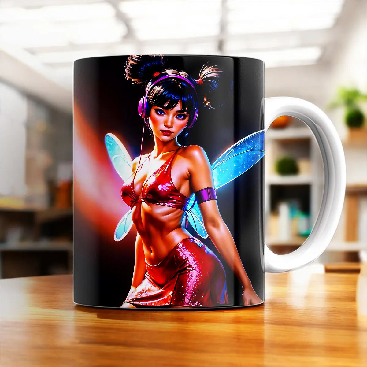 Cette tasse Musa Winx marie pratique et esthétique. La céramique blanche met en valeur l'illustration dessinée à la main sur tablette graphique, sublimée par chaleur sur les deux faces. Elle suit votre quotidien sans faire d'histoires, passe au micro-ondes et au lave-vaisselle, et reste fidèle à son look même après de nombreuses utilisations. Bref, celle qu'on garde pour soi ou celle qu'on offre en sachant qu'elle fera son petit effet.