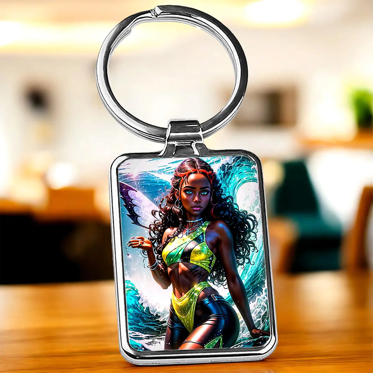 Petit format, grande personnalité. Ce porte-clés incarne la détermination et la douceur de Layla, entre mouvement et profondeur. Le métal capte la lumière, le visuel respire l'énergie, et chaque geste rappelle la magie de l'eau. C'est le type de breloque qu'on accroche à un sac et qui déclenche des conversations, le keychain qu'on garde précieusement.