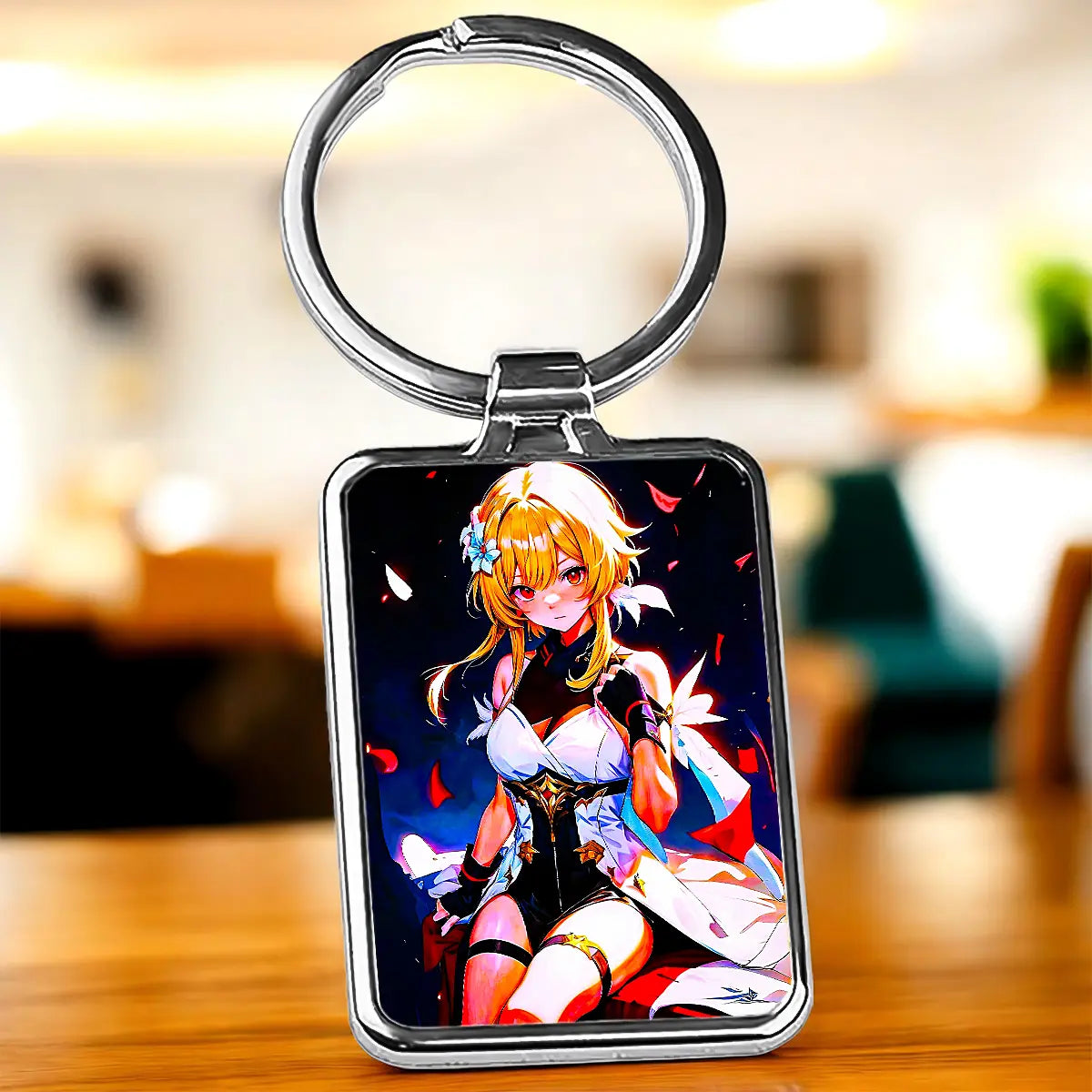 Un petit éclat de métal qui capture la lumière d'une étoile et la détermination d'une voyageuse. Avec le Porte-clé Lumine, chaque trousseau devient une scène de quête, prête à partir à l'aventure. Avouez, sortir ce bijou de sac à la caisse ou en balade, c'est un peu comme faire un clin d'œil à Teyvat. On est d'accord, il a ce je-ne-sais-quoi qui réchauffe les poches.