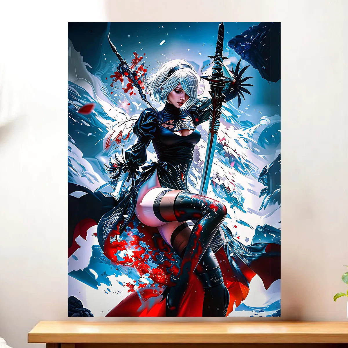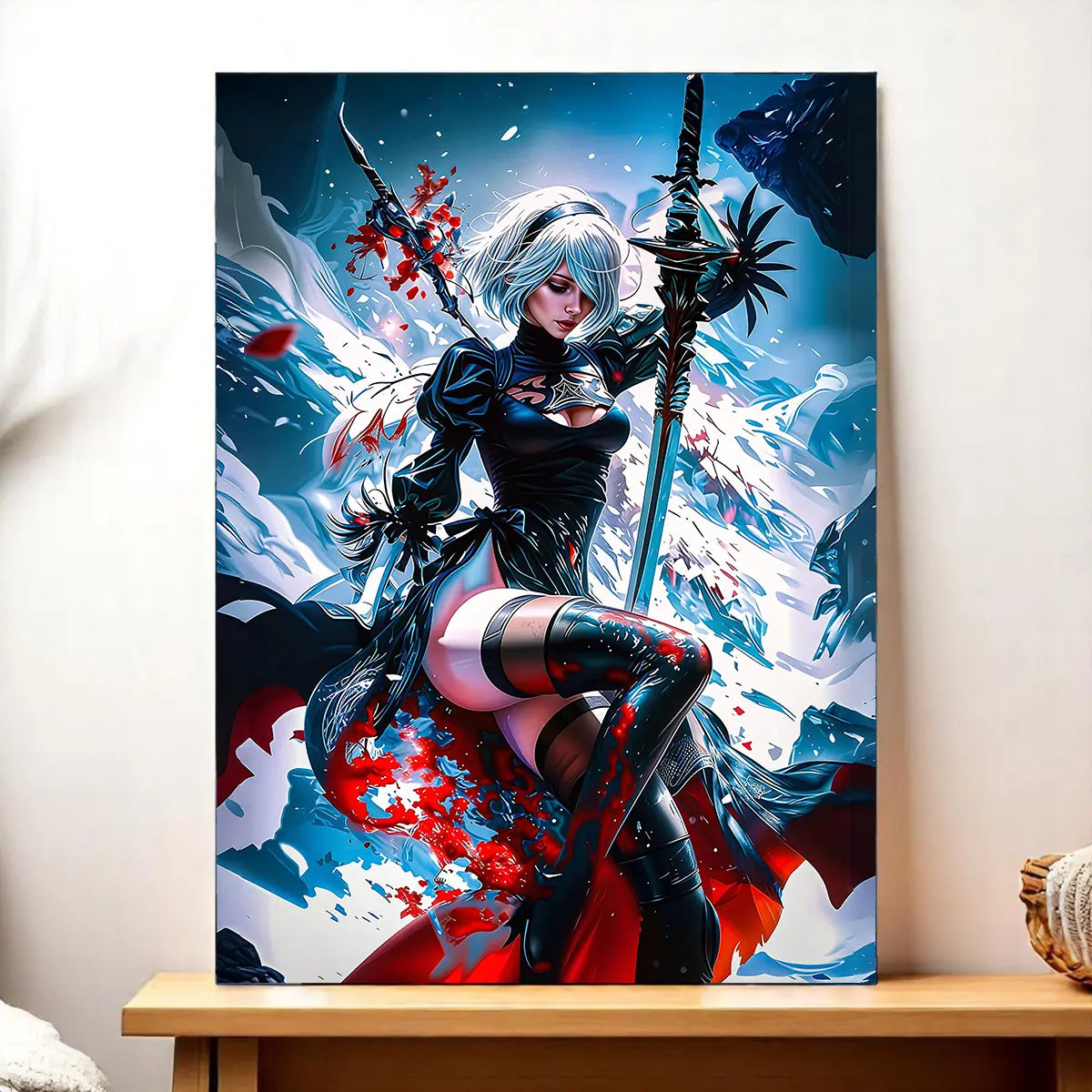 Parce que ce visuel ne se contente pas d’être joli, il raconte une histoire. Chaque détail de cette œuvre évoque la grâce combattante de 2B et l’émotion d’un monde déserté. Que vous choisissiez le tableau, l’affiche, le poster ou le cadre, le rendu premium transforme votre pièce en une scène à la fois douce et troublante. On est d’accord, c’est exactement le type d’illustration qui fait tourner les têtes et déclenche des conversations.