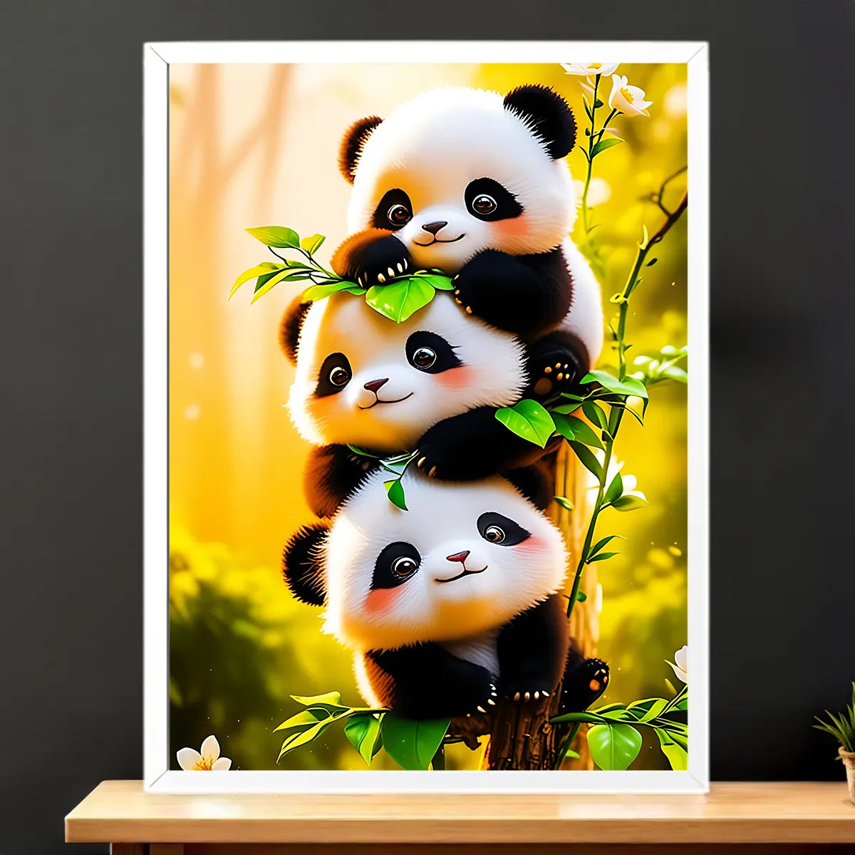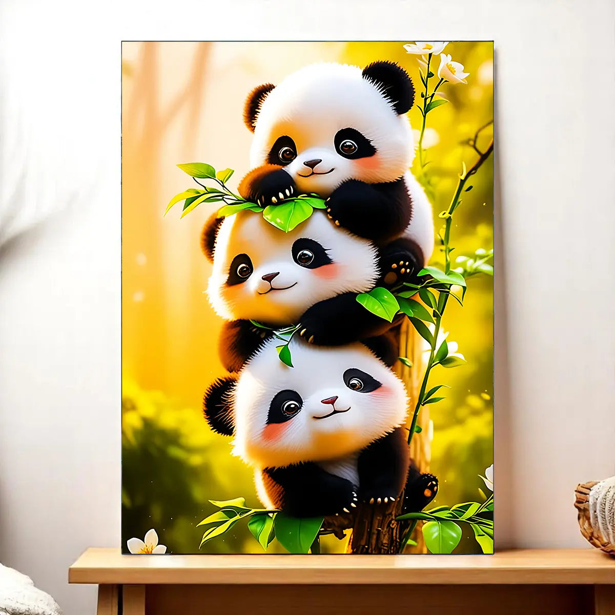 Tableau 3 petits Pandas — Douceur câline et charme nature