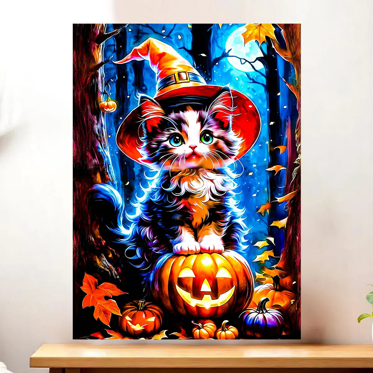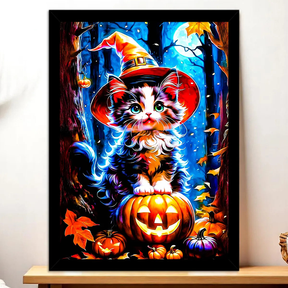 Avouez, on fond pour ce petit regard malicieux qui illumine la nuit des citrouilles. Le Tableau Chat Halloween pose son mystère sur vos murs avec une pointe d’humour et beaucoup de charme. Lumières tamisées, textures chaleureuses, on sent presque le parfum des feuilles d’octobre et le froissement du tissu du chapeau de sorcière. Franchement, c’est la pièce qui change tout dans une entrée, un salon ou un coin lecture.