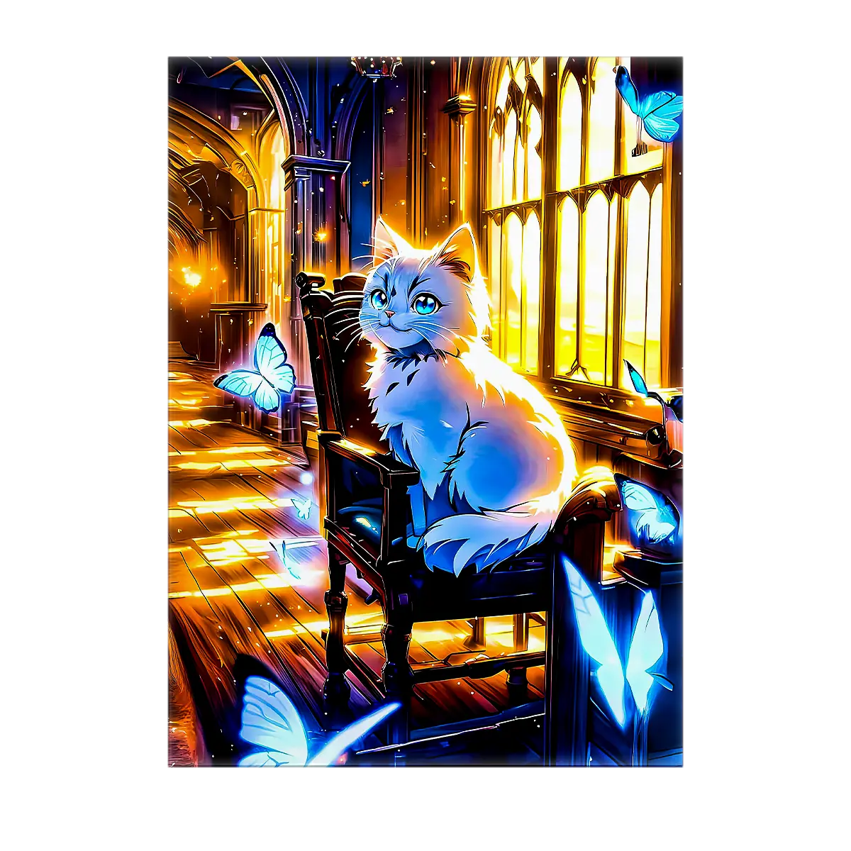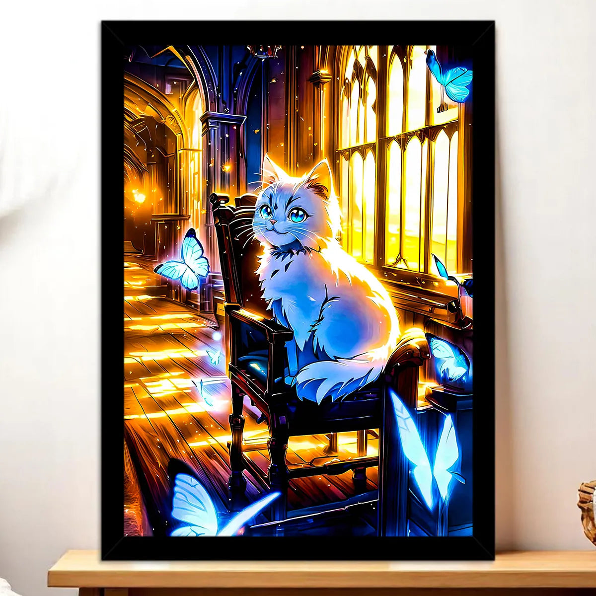 Tableau Chat Papillon — Une danse poétique entre félin et nature