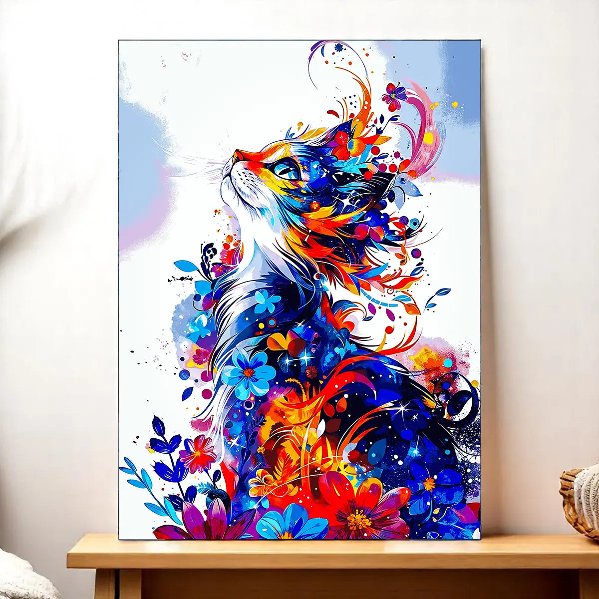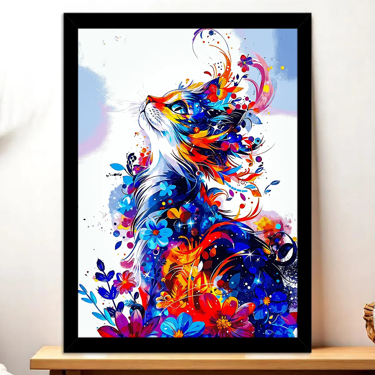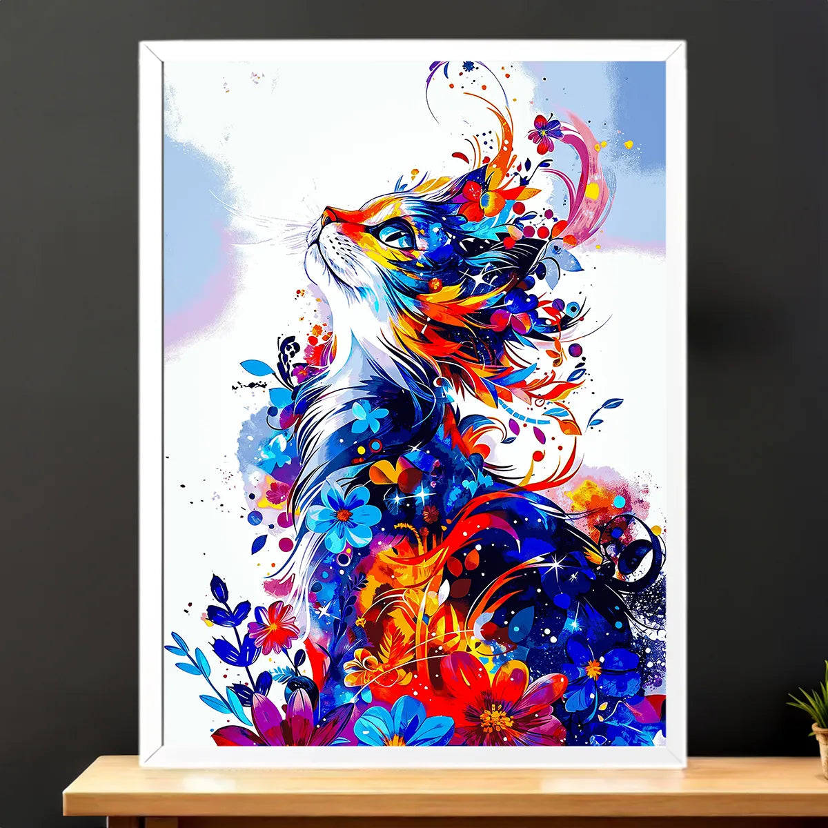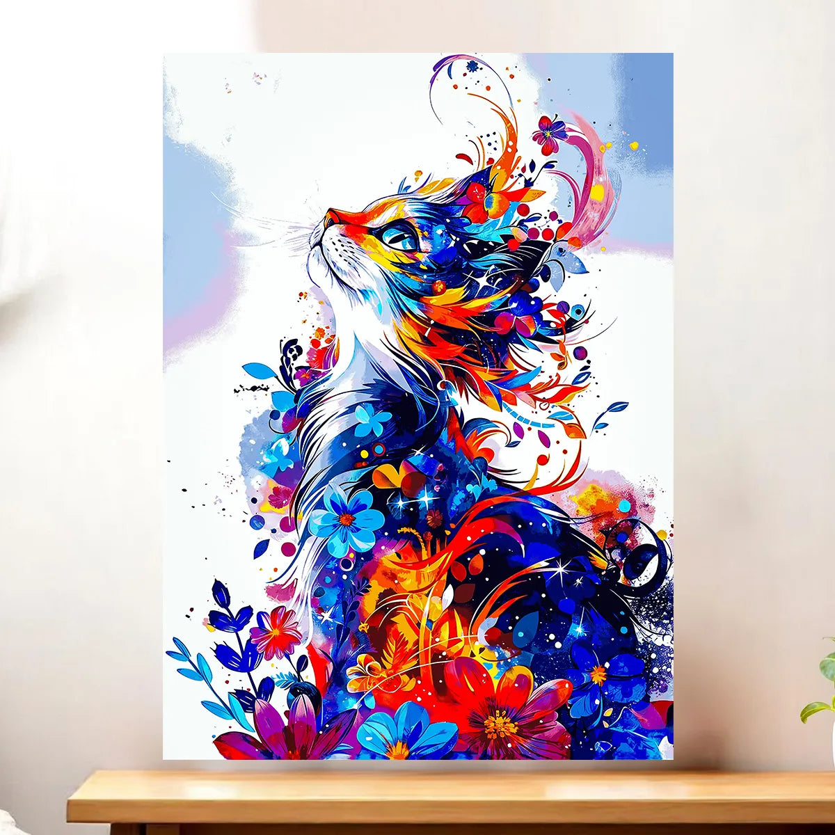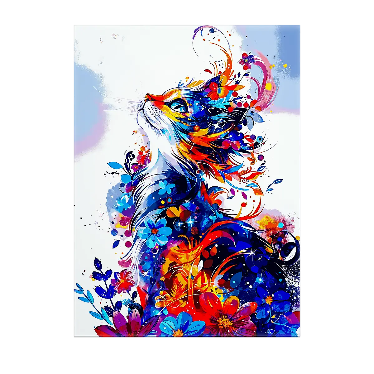 L’affiche Chat Peinture reprend la même composition mais imprimée en HD sur papier photo 200g. Disponible en plusieurs formats classiques, cette affiche est la solution légère et modulable pour créer une galerie murale. Elle capte la lumière et révèle les détails du regard avec une grande finesse.