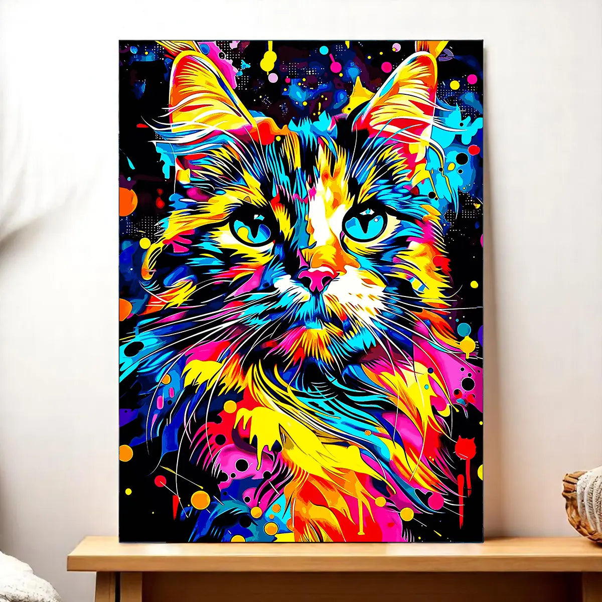 Un visuel joyeux, une finition soignée, et ce chat pop qui transforme votre déco en manifeste coloré.