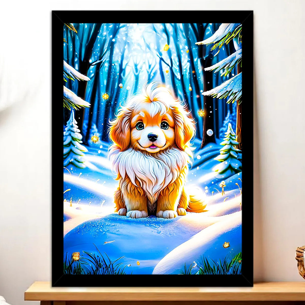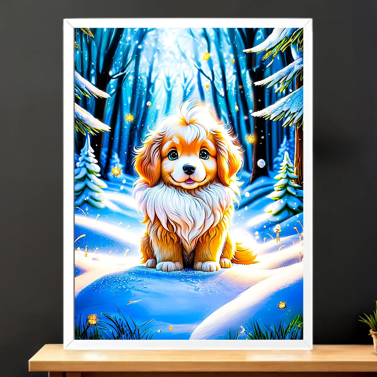 Voici un aperçu de votre futur Tableau Chien Neige ✨