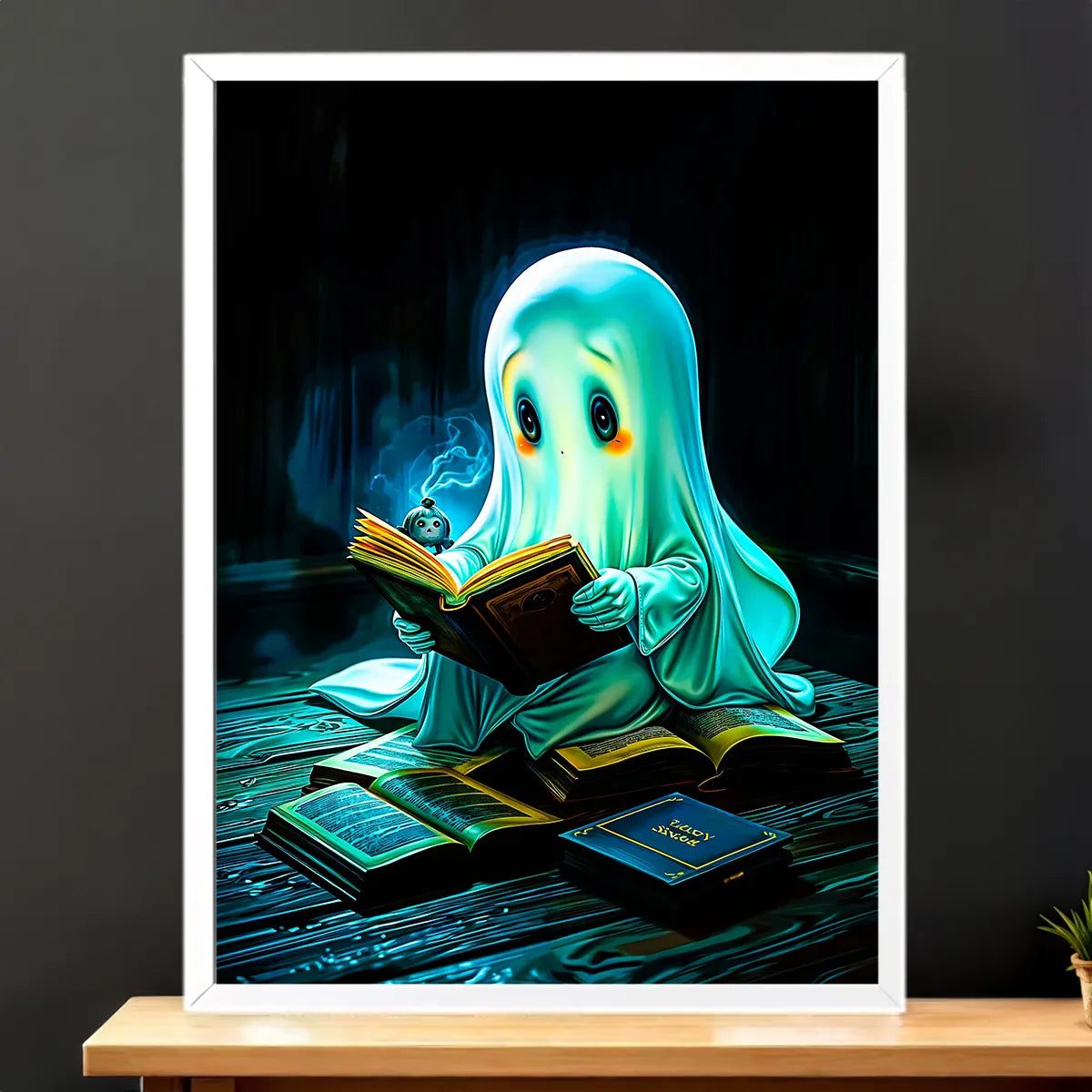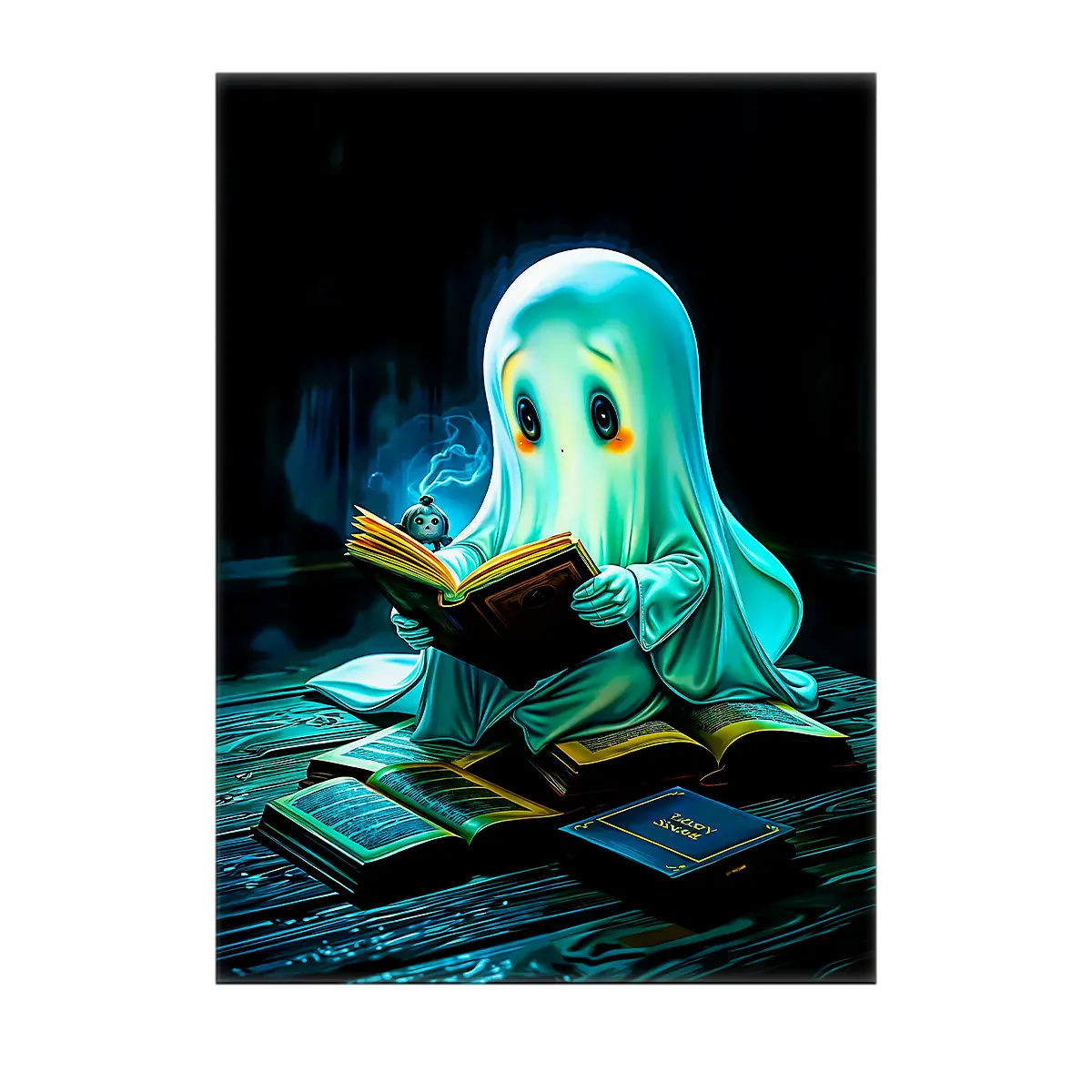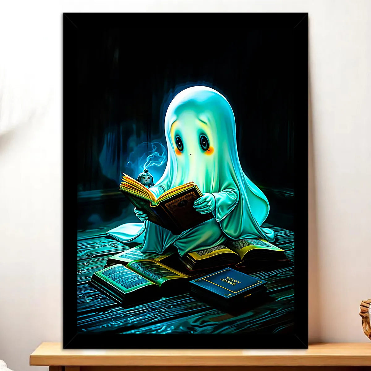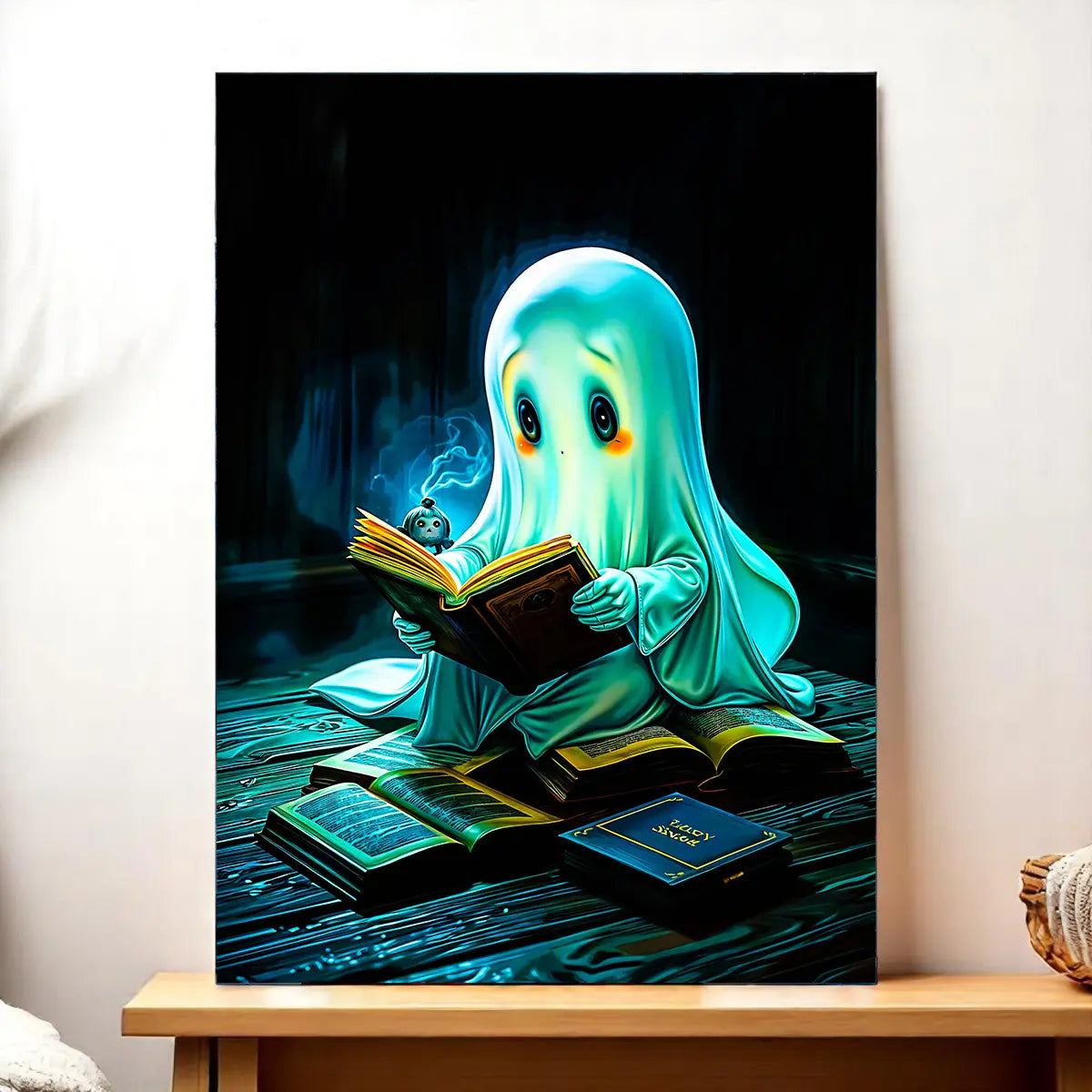 Parce que ce visuel n’est pas juste mignon, il raconte une petite histoire à lui tout seul. Le fantôme est espiègle mais bienveillant, il apporte une chaleur inattendue, comme une lampe douce qui invite à la détente. Que vous choisissiez le tableau, l’affiche, le poster ou le cadre, l’illustration crée une atmosphère ludique et rassurante. On est d’accord, ce compagnon éthéré apporte une touche artisanale et poétique qui transforme un mur en sourire.