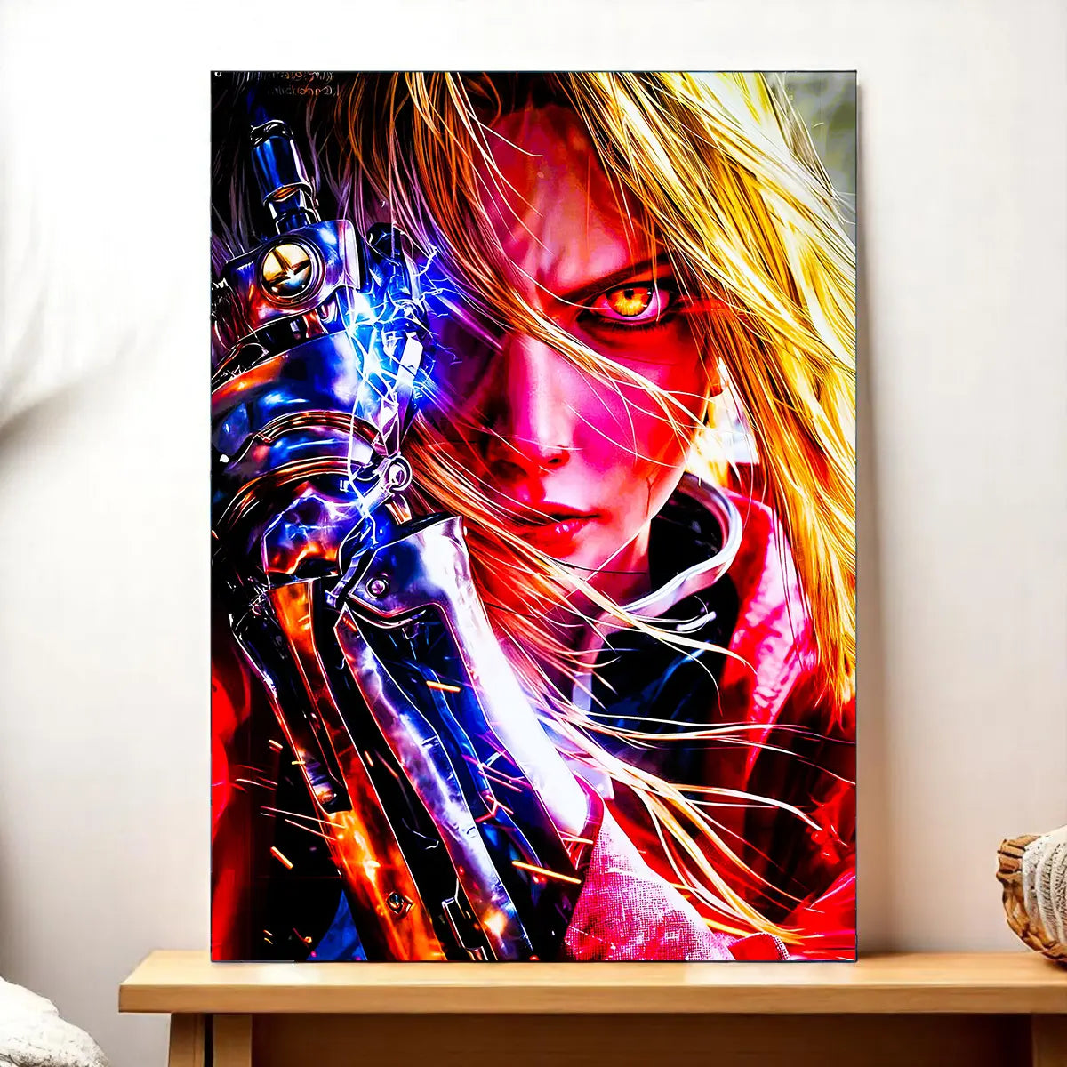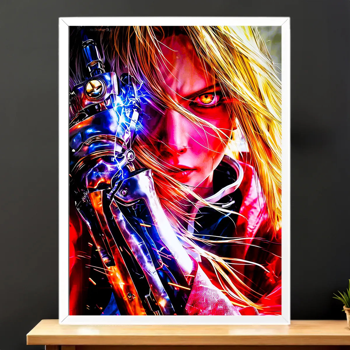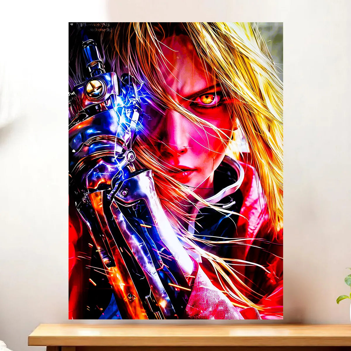 Parce que ce n’est pas juste une image, c’est une histoire. Le tableau transforme les symboles d’alchimie en décor vivant, l’affiche plonge votre pièce dans une ambiance narrative, le poster lui donne une intensité ciné et le cadre sublime le tout pour en faire une véritable œuvre murale. Franchement, pour un fan de FullMetal Alchemist ou pour quelqu’un qui aime les visuels profonds, c’est le genre de pièce qui déclenche des conversations. On ressent la texture, on voit la lumière sur la plaque d’automail, on entend presque le grincement des mécanismes.