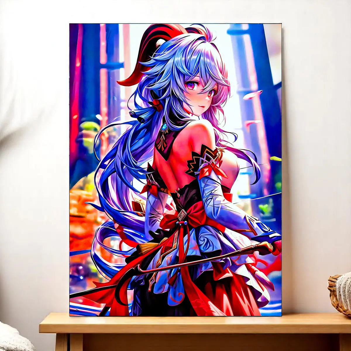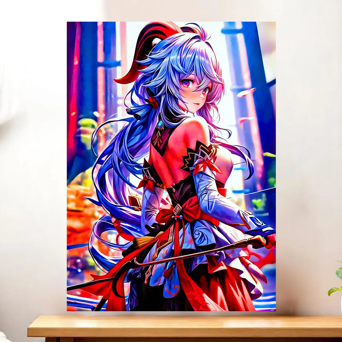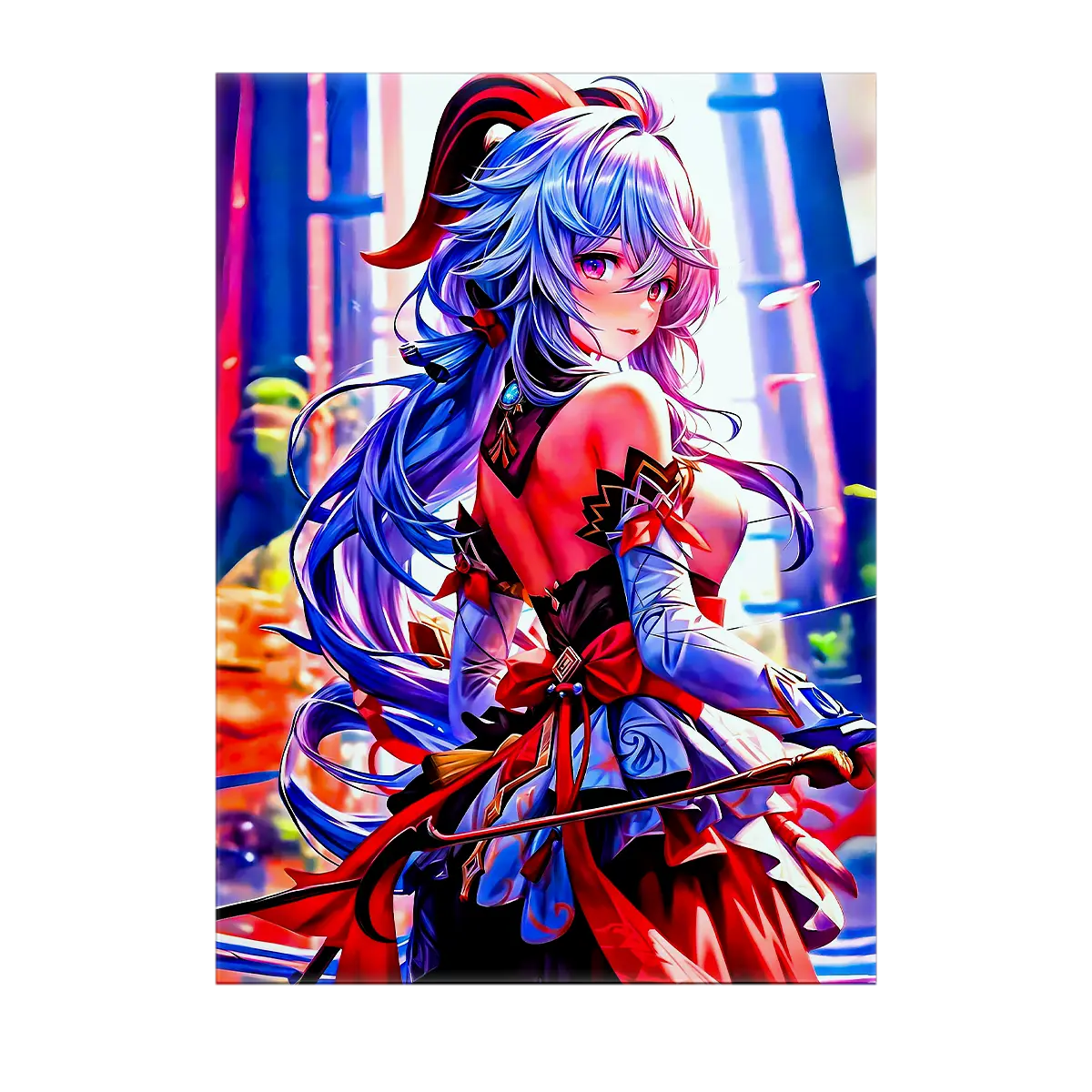 Le poster Ganyu joue la carte cinématographique. Plus ample, plus vivant, il restitue la profondeur des couleurs Cryo et l’éclat des détails. Posé dans une chambre ou un salon, le poster capte la lumière et transforme l’espace, comme une scène figée sortie d’un conte de Liyue.