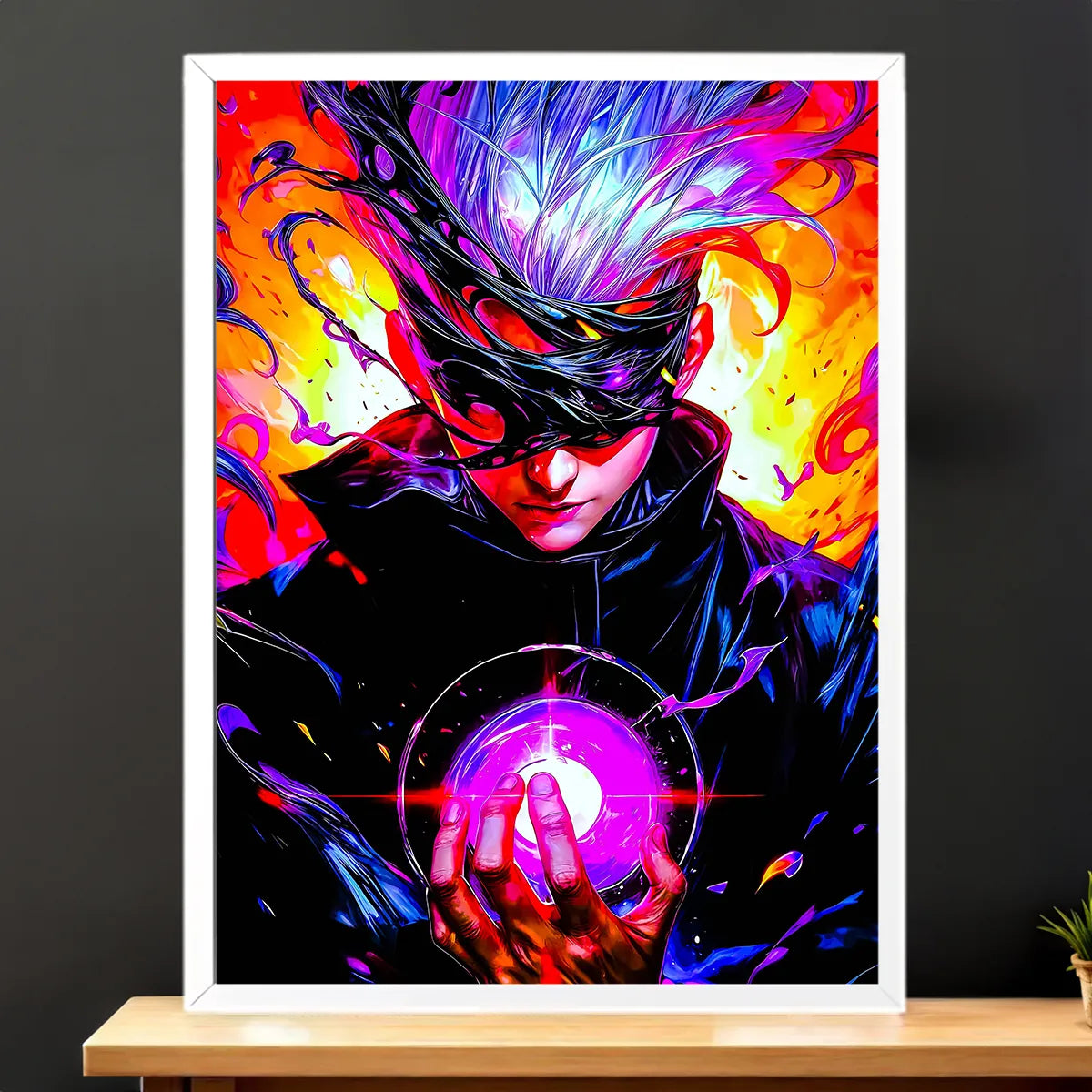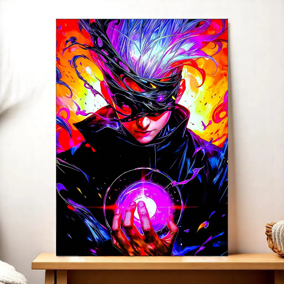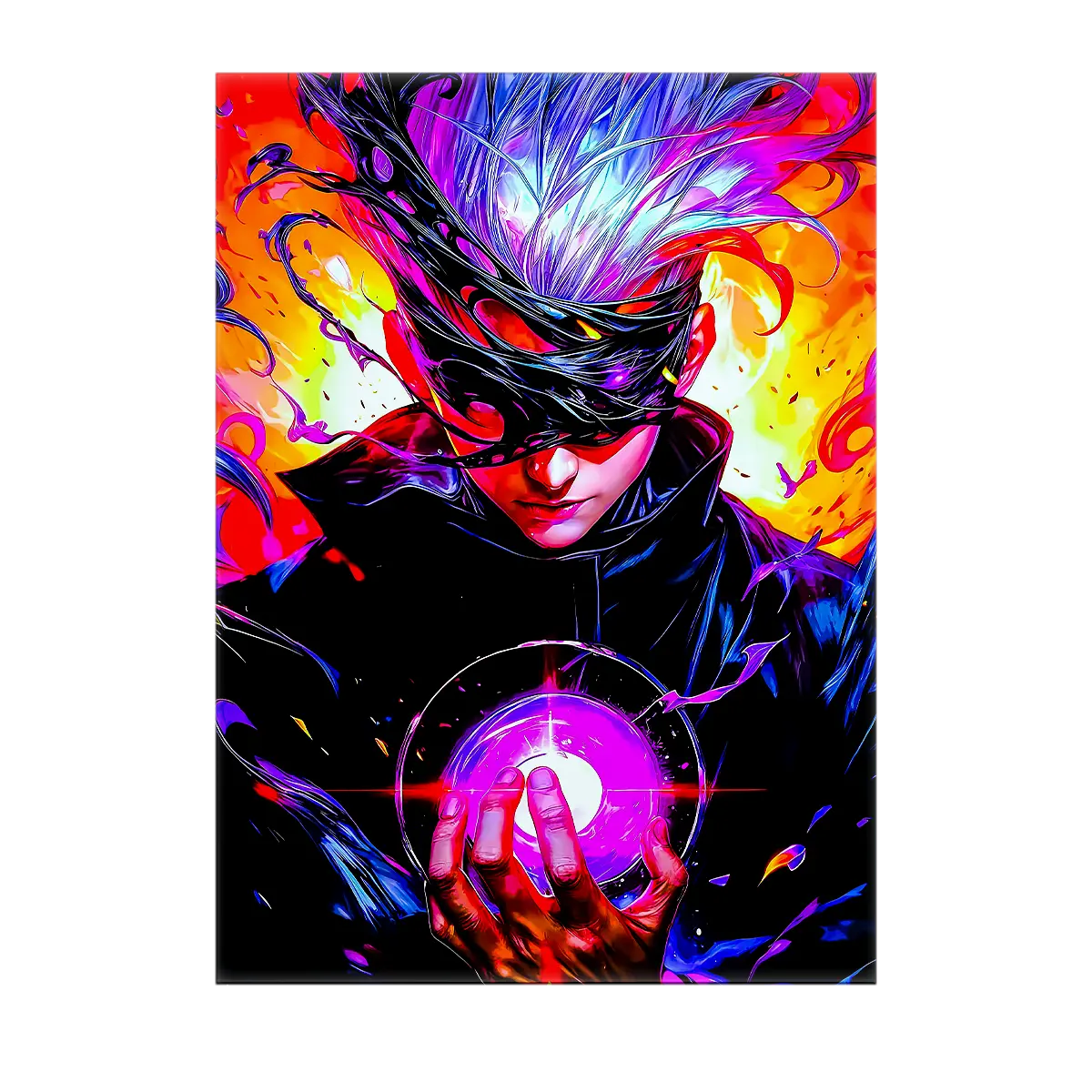 Un éclair de mystère, un regard qui transperce l’âme, et cette aura qui fait frissonner les fans. Avec le Tableau Gojo, vous ramenez chez vous toute la prestance de Satoru Gojo. Création réalisée à la main, chaque trait capte la lumière et la texture du personnage. Avouez… un visuel comme ça change tout dans une chambre, un salon ou un coin gaming.