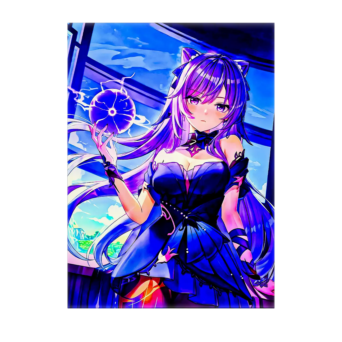 Un éclair violet traverse l’air, une silhouette gracile se dresse, et tout devient énergie. Avec ce Tableau Keqing, vous invitez chez vous une héroïne qui mêle finesse et puissance. Création réalisée à la tablette graphique, le visuel capte la détermination de Keqing et sa lumière singulière. Avouez… avoir Keqing au mur, c’est instantanément du caractère dans la pièce.