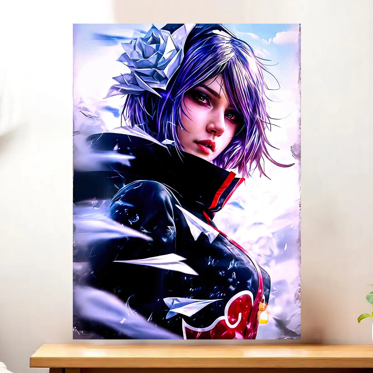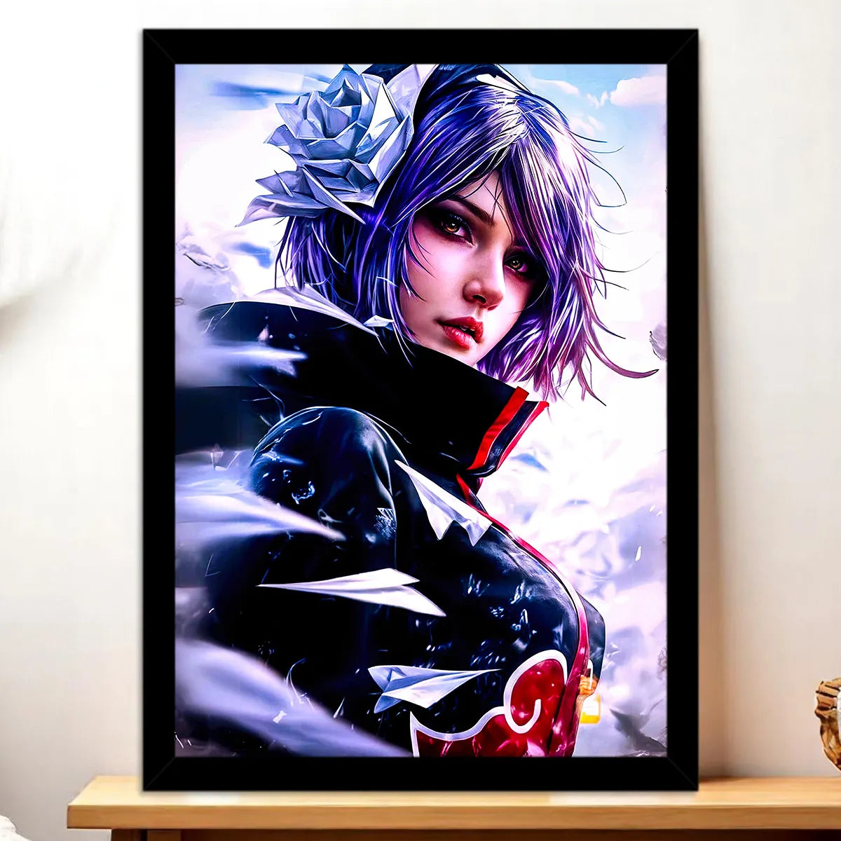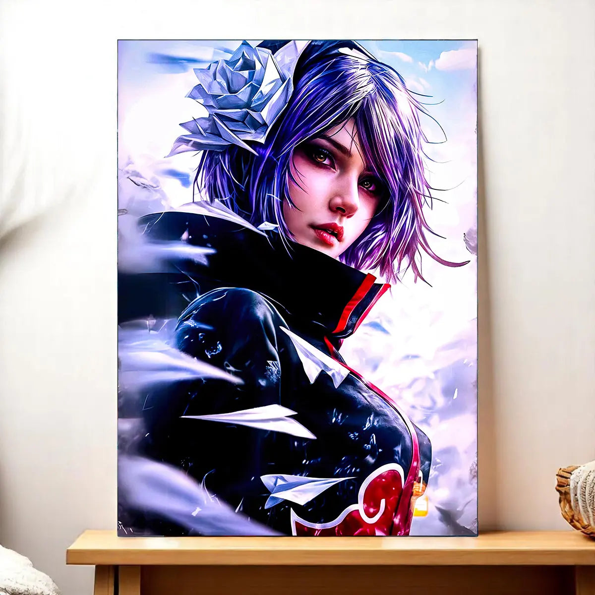 Chaque pièce est une œuvre réalisée à la main, sans IA, et pensée pour capturer l’essence de Konan et de l’Akatsuki. Le rendu premium sublime les détails du visuel et s’adapte à votre déco grâce aux options tableau, affiche, poster ou cadre. Franchement, on est d’accord, Konan mérite une place d’honneur sur vos murs et apporte cette touche à la fois mystérieuse et élégante qui change toute l’ambiance.