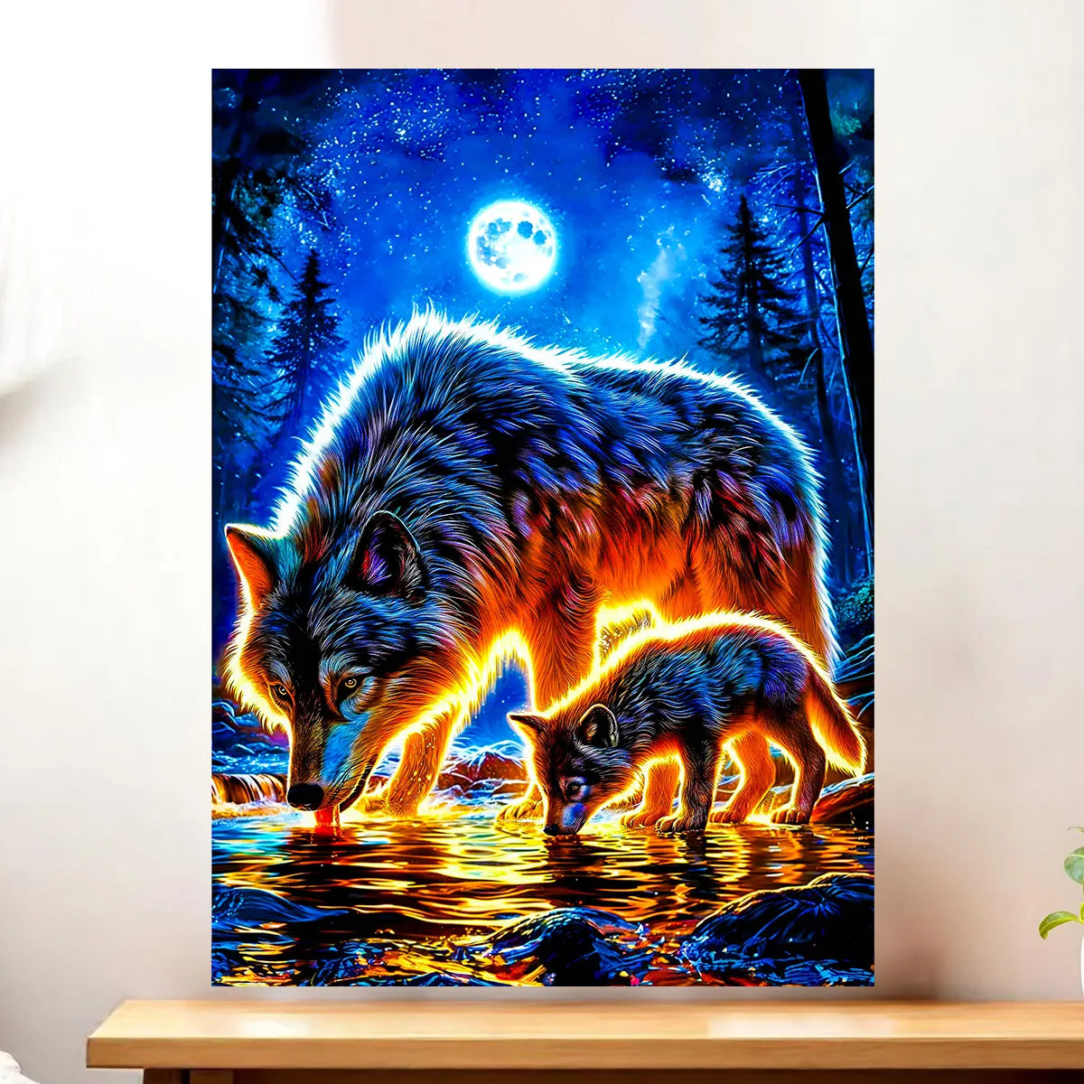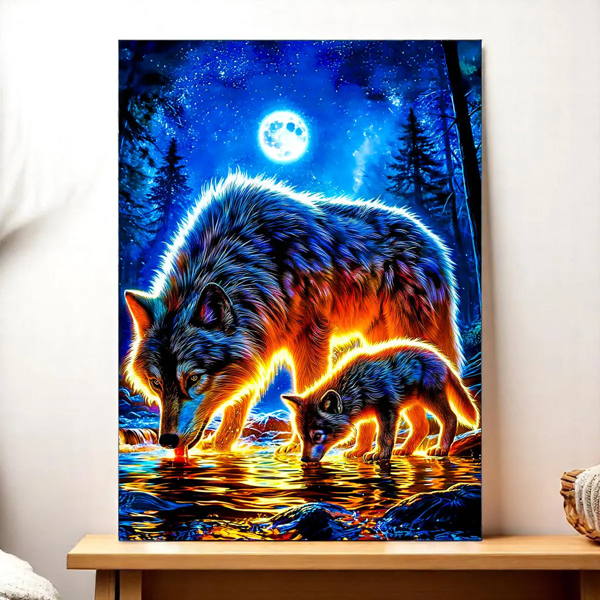 Voici un aperçu de votre futur Tableau Loup Famille ✨