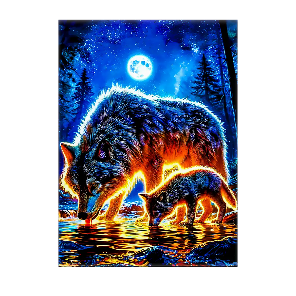 L’affiche Loup Famille offre la même intensité mais en version modulable et accessible. Imprimée en HD sur papier photo 200g, disponible en 10×15, 13×18, 21×29 et 30×40 cm, elle révèle chaque détail du dessin et trouvent sa place dans une galerie murale ou sur une étagère. Idéale pour multiplier les ambiances et partager l’histoire de la meute.