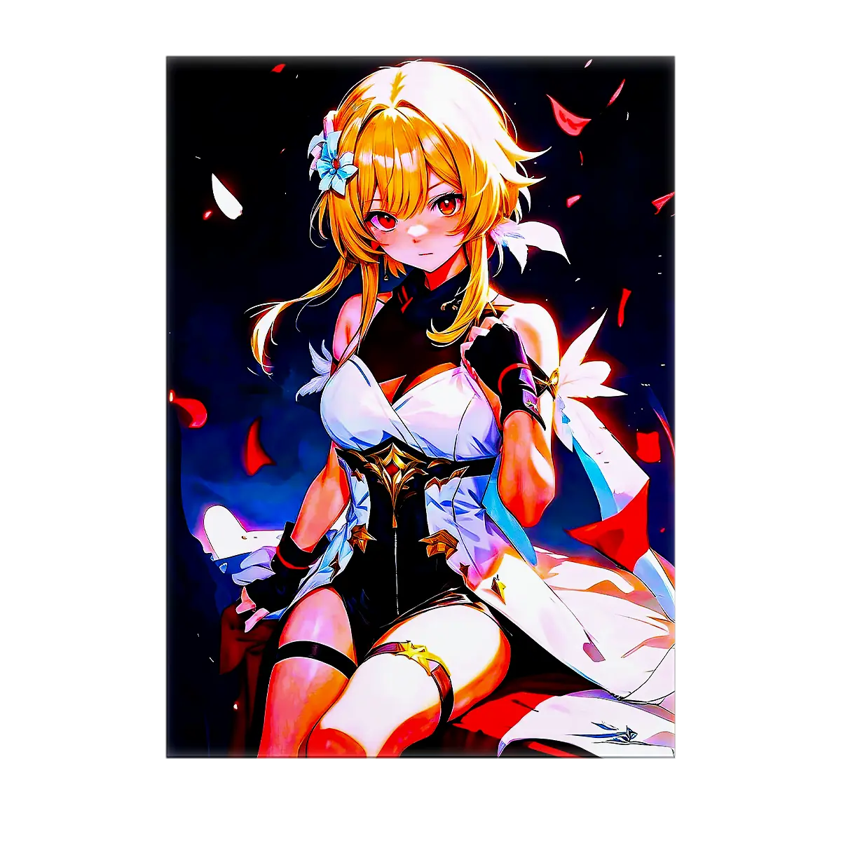 L’affiche Lumine restitue toute la finesse du dessin, imprimée en HD sur papier photo 200g. Disponible en 10×15, 13×18, 21×29 et 30×40 cm, c’est la version modulable et accessible pour les fans. Légère, lumineuse, parfaite pour créer des compositions murales ou compléter une collection Genshin Impact.