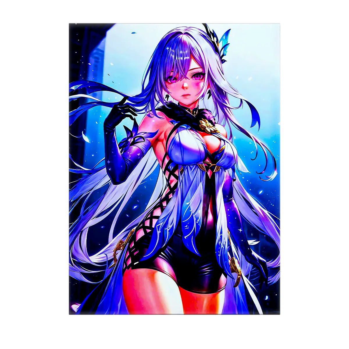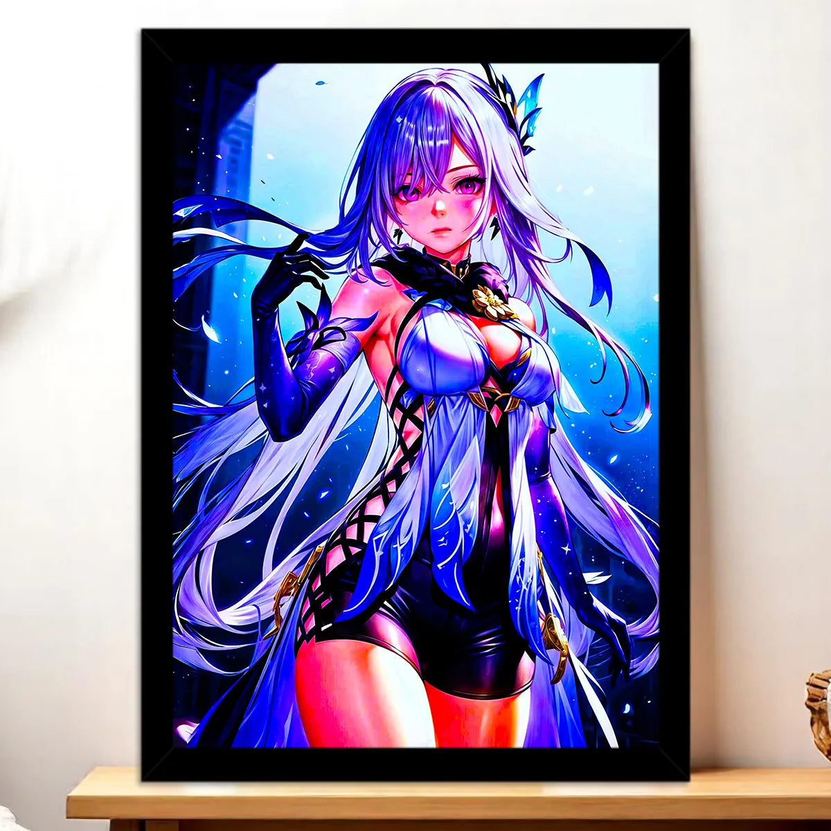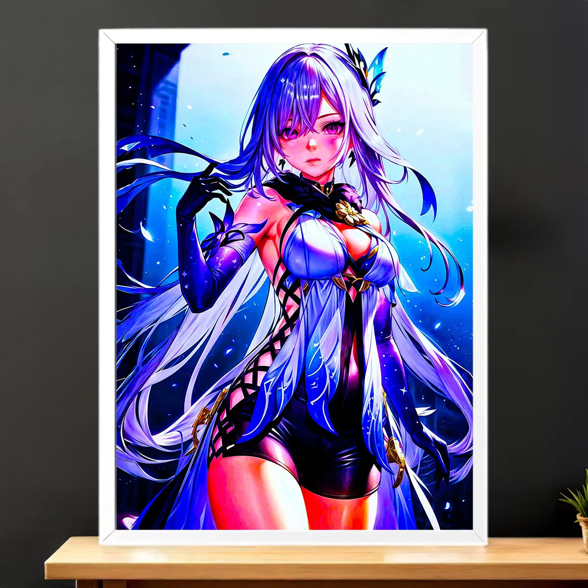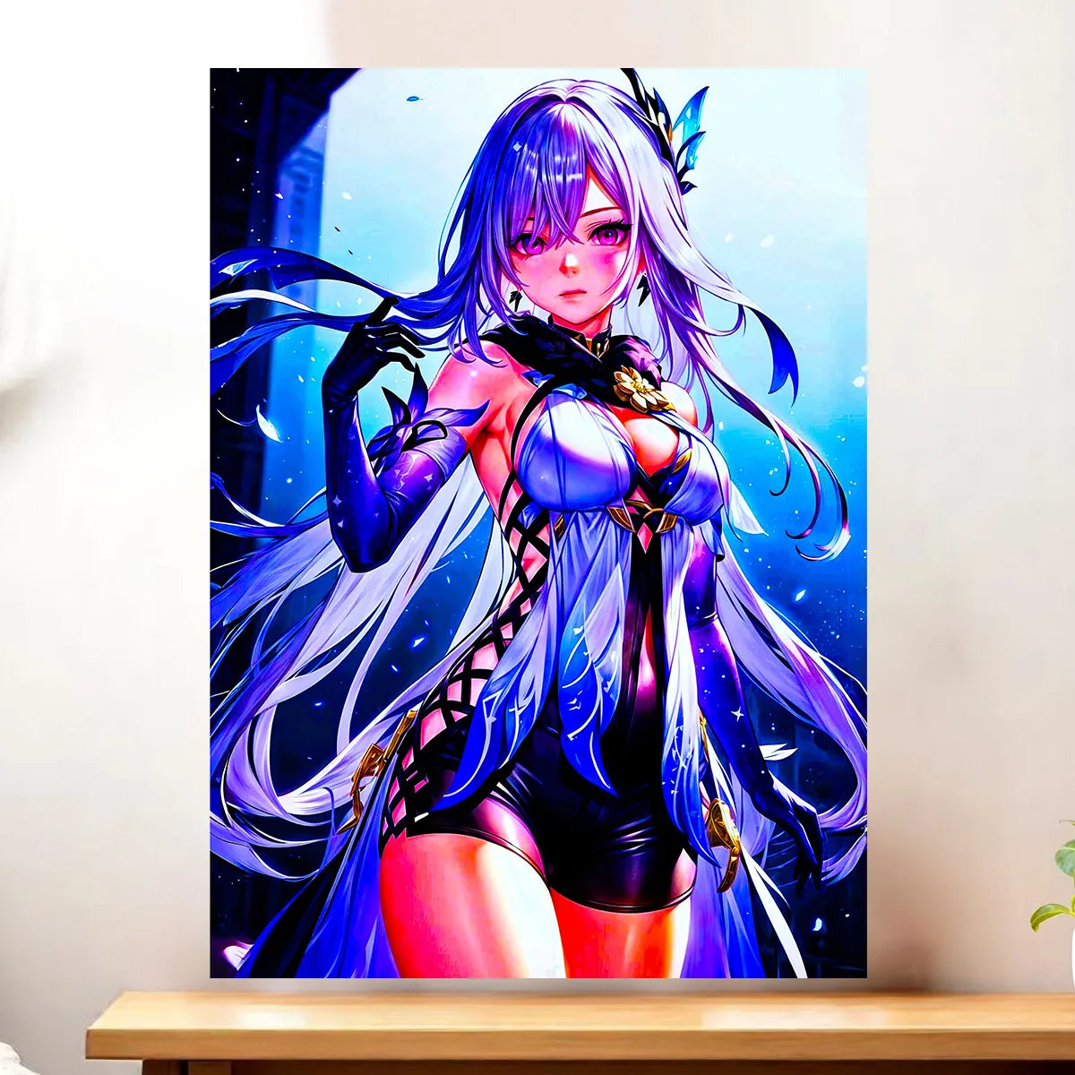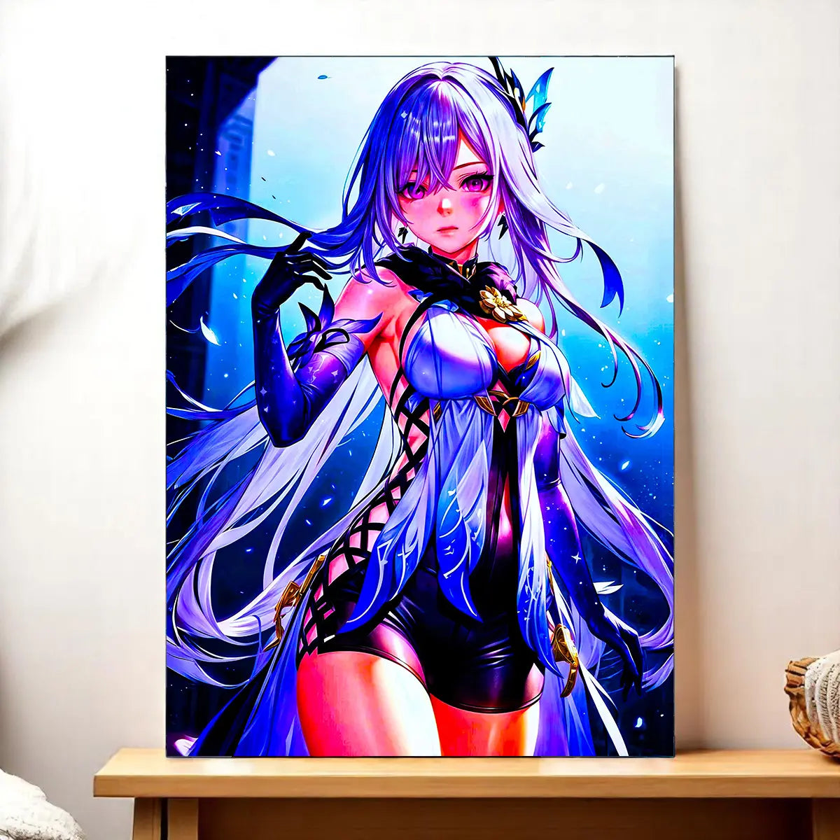 Chaque pièce est pensée comme une petite histoire, réalisée à la main sur tablette graphique, sans IA. Le tableau, l’affiche, le poster ou le cadre mettent Skirk en lumière et font ressentir l’ambiance mystérieuse de Genshin Impact. La texture de la toile, la douceur du papier photo, la profondeur des encres, tout concourt à ce sentiment d’immersion. Vous ne choisissez pas seulement une déco, vous choisissez une scène à revivre chaque jour.