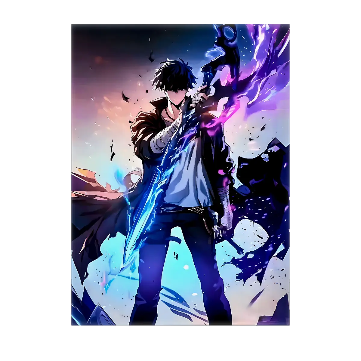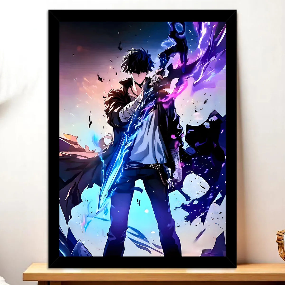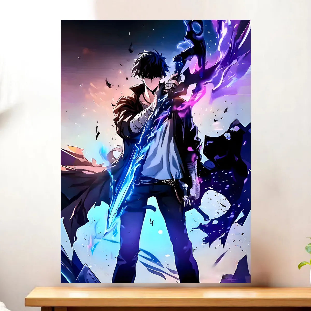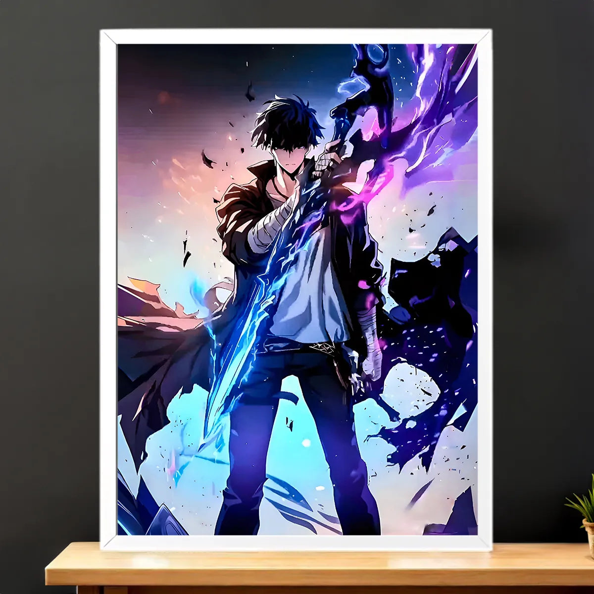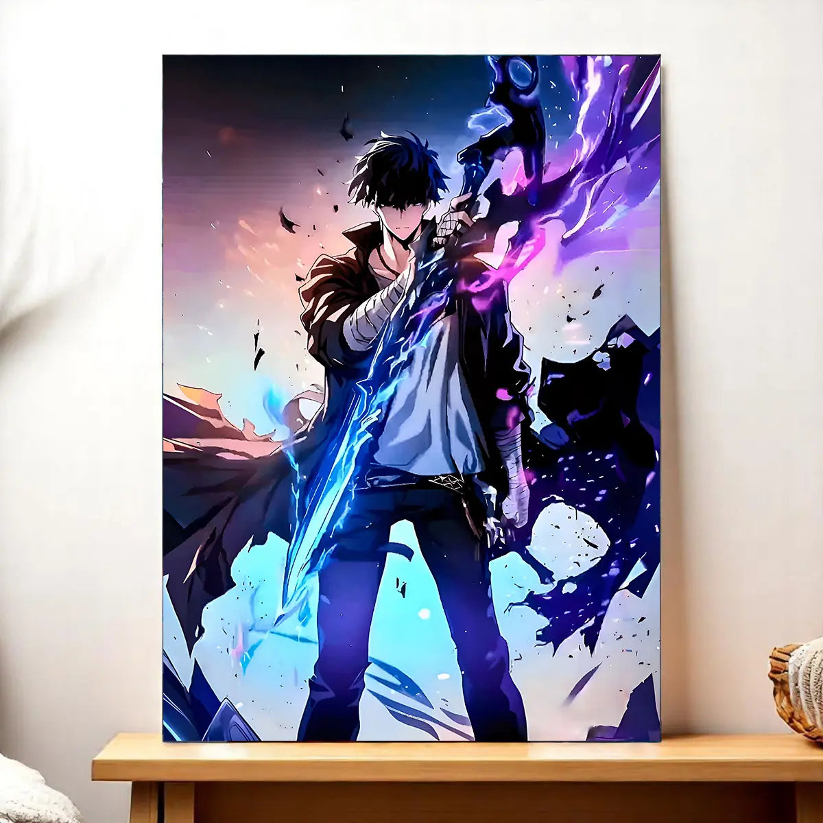 Parce que chaque création est une véritable œuvre, réalisée sans IA et pensée pour les connaisseurs. Le tableau, l'affiche, le poster ou le cadre subliment chaque détail du héros Sung Jin-Woo et racontent une micro histoire à chaque regard. On est d'accord, c'est plus qu'une image, c'est une présence qui électrise la déco et donne du récit à votre pièce.