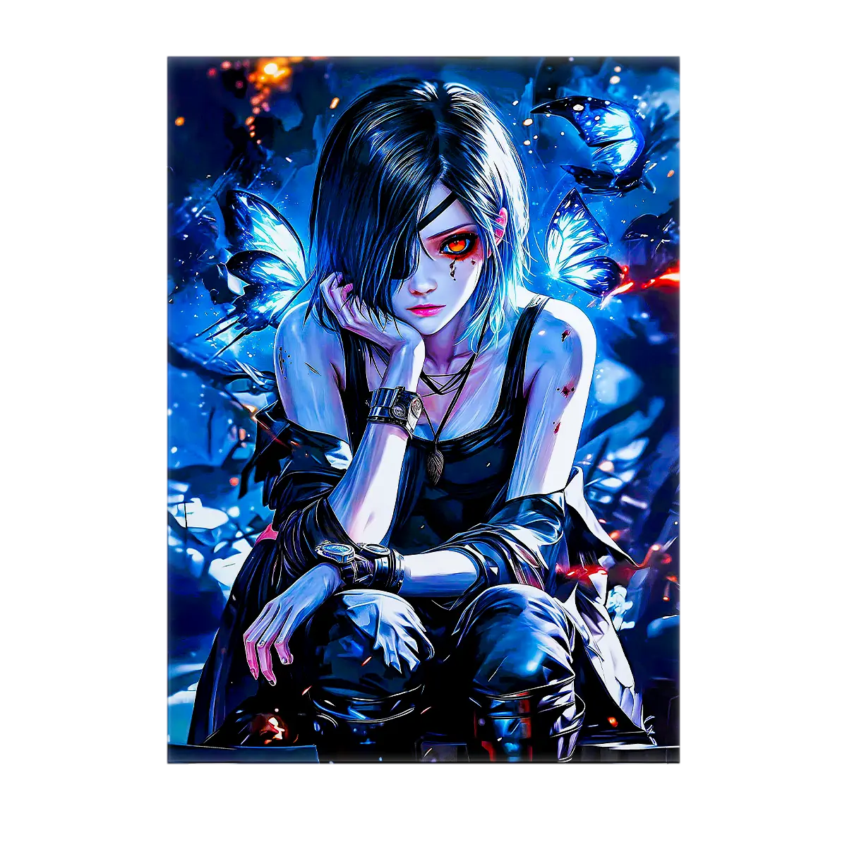 Parce que chaque pièce est une création authentique, réalisée sans IA, où l’on sent la main et l’intention de l’artiste. Le tableau, l’affiche, le poster ou le cadre vous offrent le choix selon votre manière d’exposer l’univers Tokyo Ghoul. La texture, la lumière et la profondeur du visuel racontent une micro-histoire: Touka entre ombre et lumière, entre douceur et colère contenue. Vous ne prenez pas juste une image, vous invitez une atmosphère.