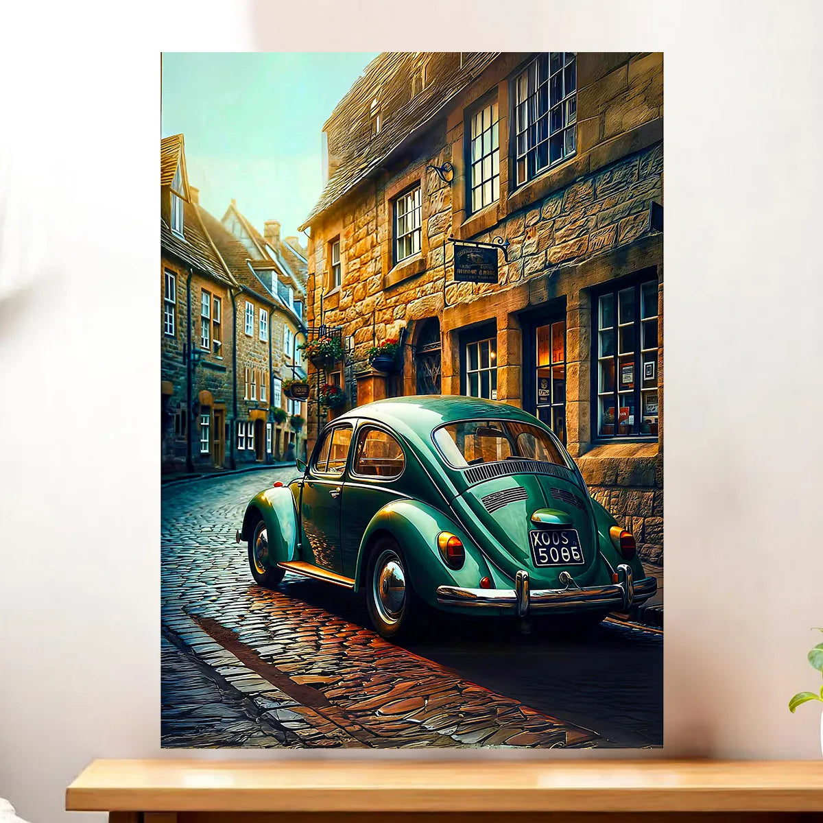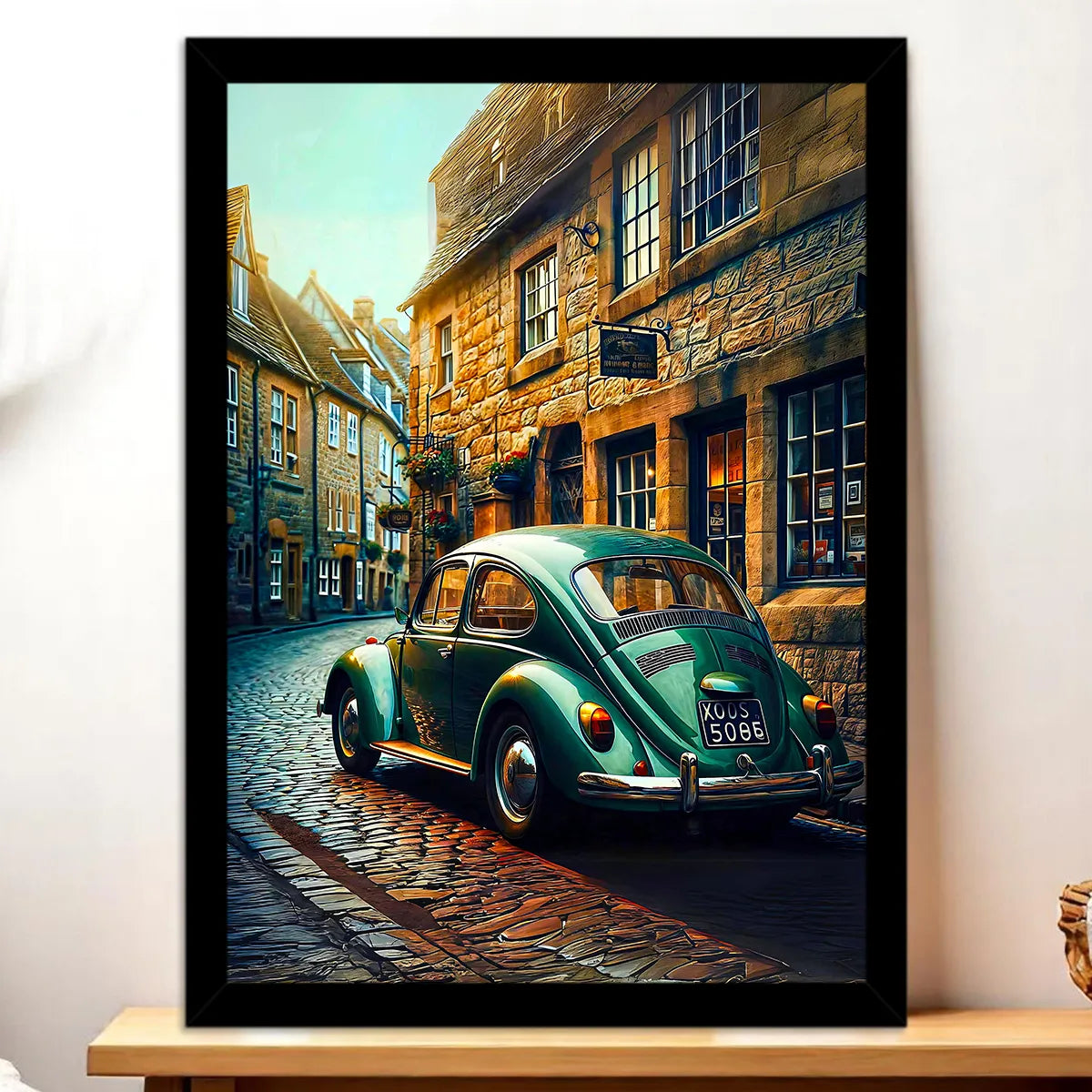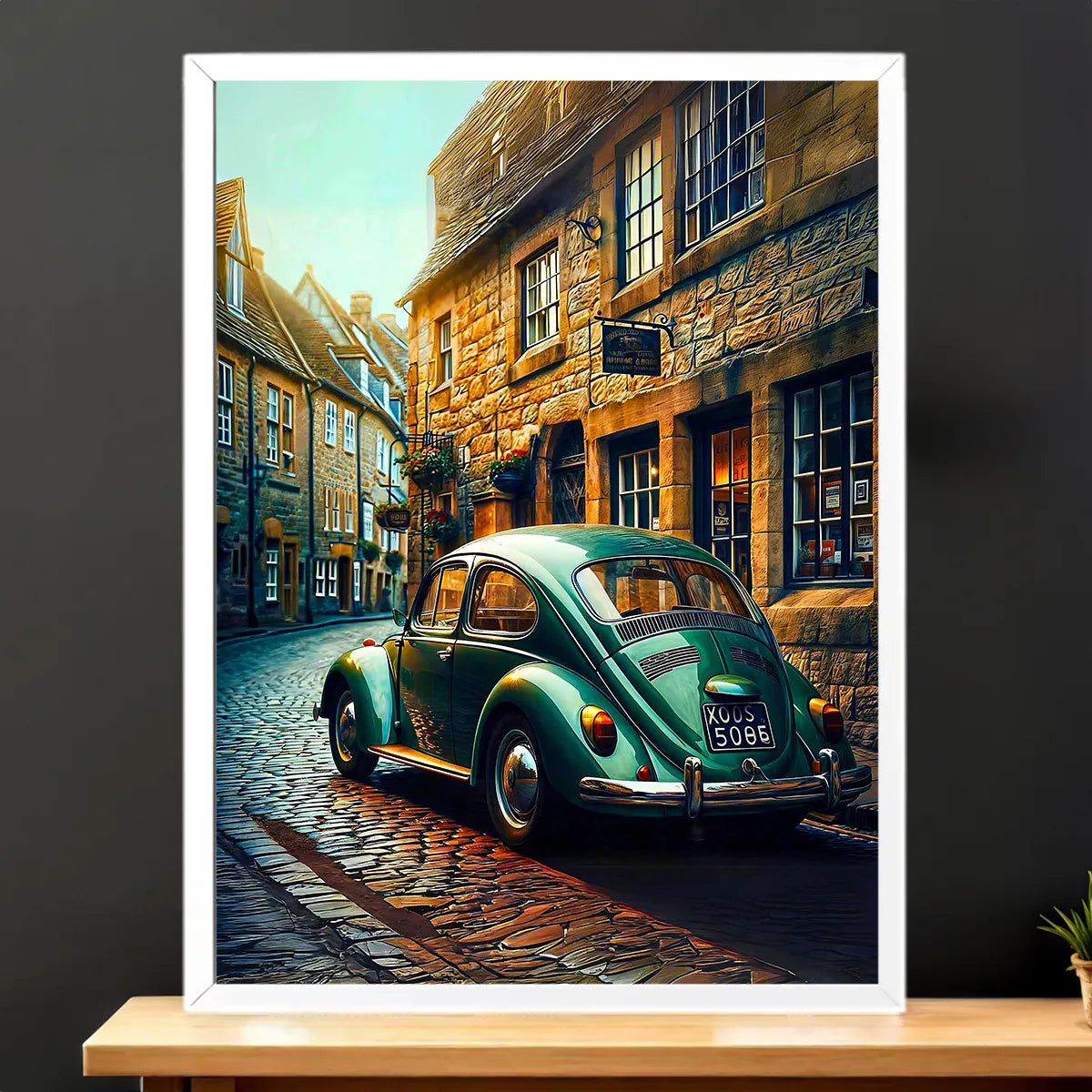 Le poster a ce ton un peu cinématographique qui met la scène en valeur. Idéal pour un garage, un bureau ou un salon, le poster voiture ancienne restitue l’ambiance rétro comme au cinéma. On sent presque le moteur qui ronronne, la poussière du bitume et l’éclat du chrome.