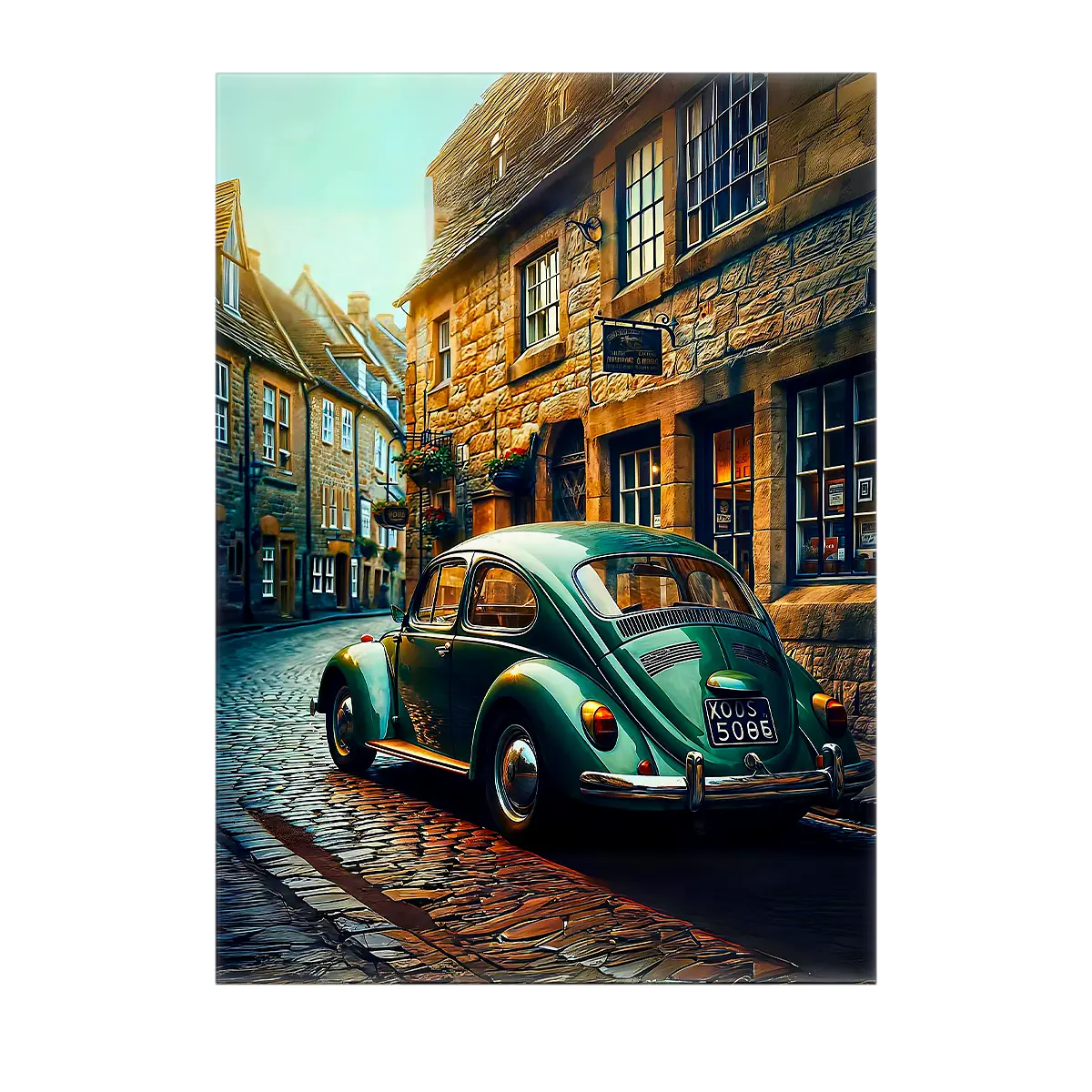 L’affiche Voiture Ancienne reprend chaque nuance et chaque reflet, imprimée en HD sur papier photo 200g avec encres anti-UV. Proposée en 10×15, 13×18, 21×29 et 30×40 cm, c’est la version accessible et modulable qui habille un mur sans en faire trop.